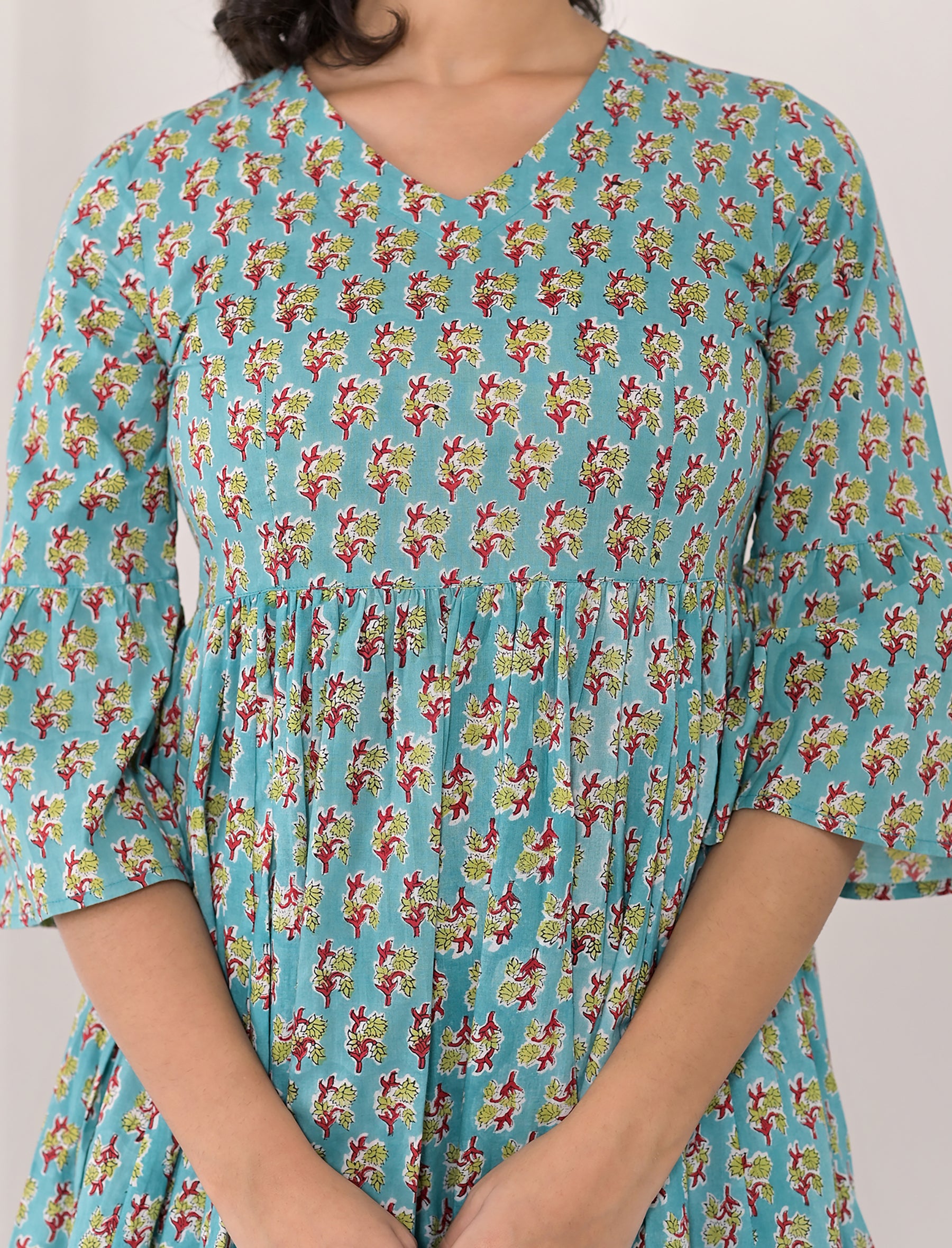 Yellow Butta Block Printed Cotton Straight Fit Kurti