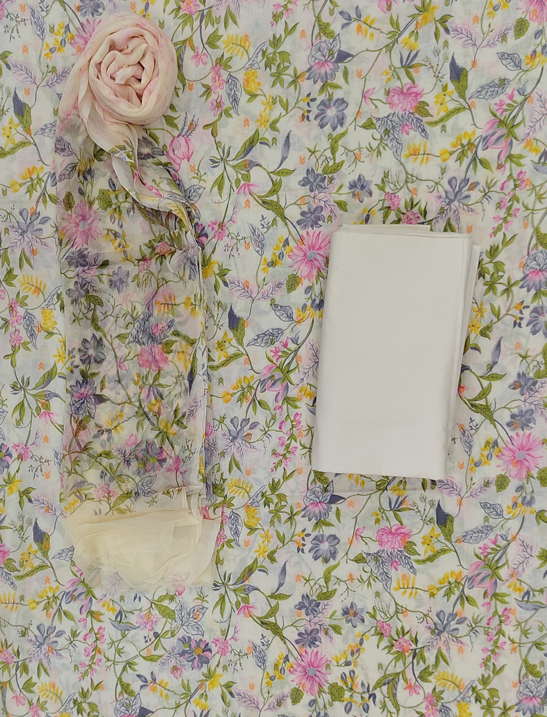 Block Printed Unstitched Dress Material With Chiffon Dupatta