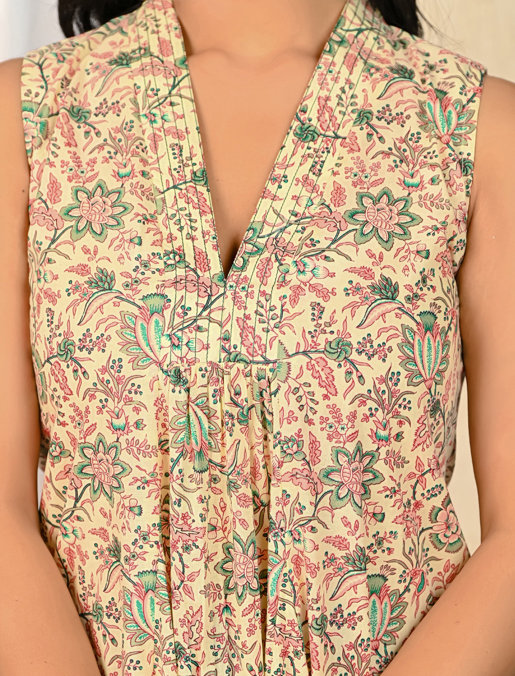 Pastel Mustard Barik Butti Printed Cotton Co-Ord Set