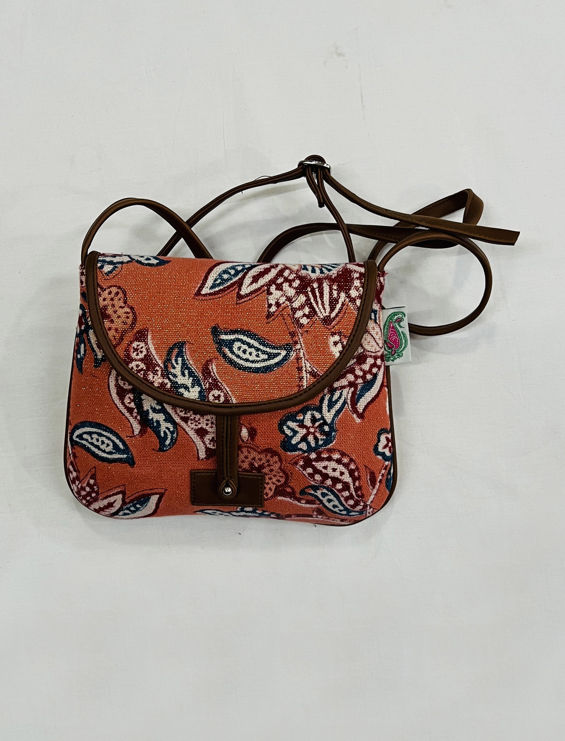 Peach White Spaghetti Strap Block Printed Cotton Dress