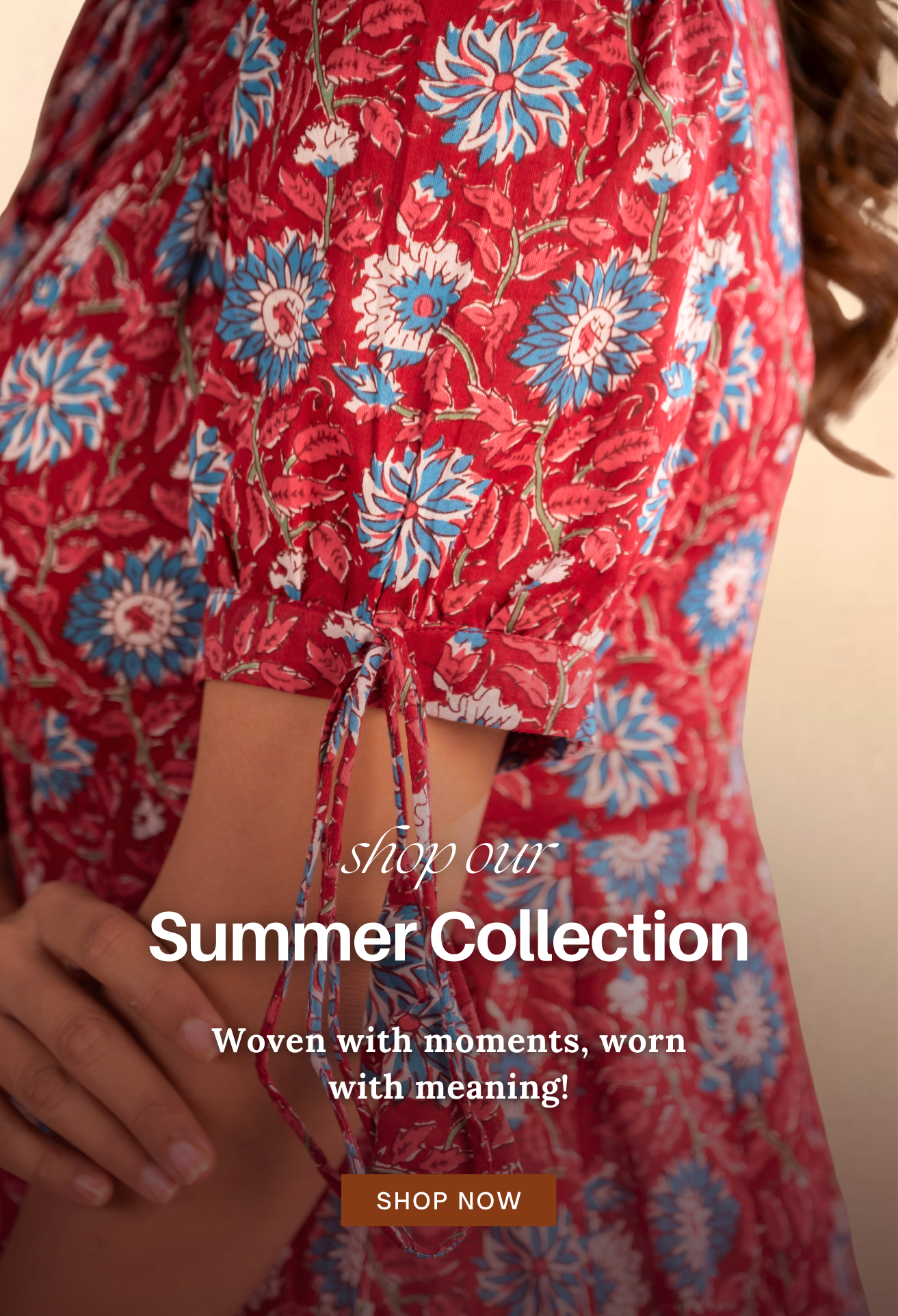 Sea Blue Mulmul Cotton Hand Block Printed Dress