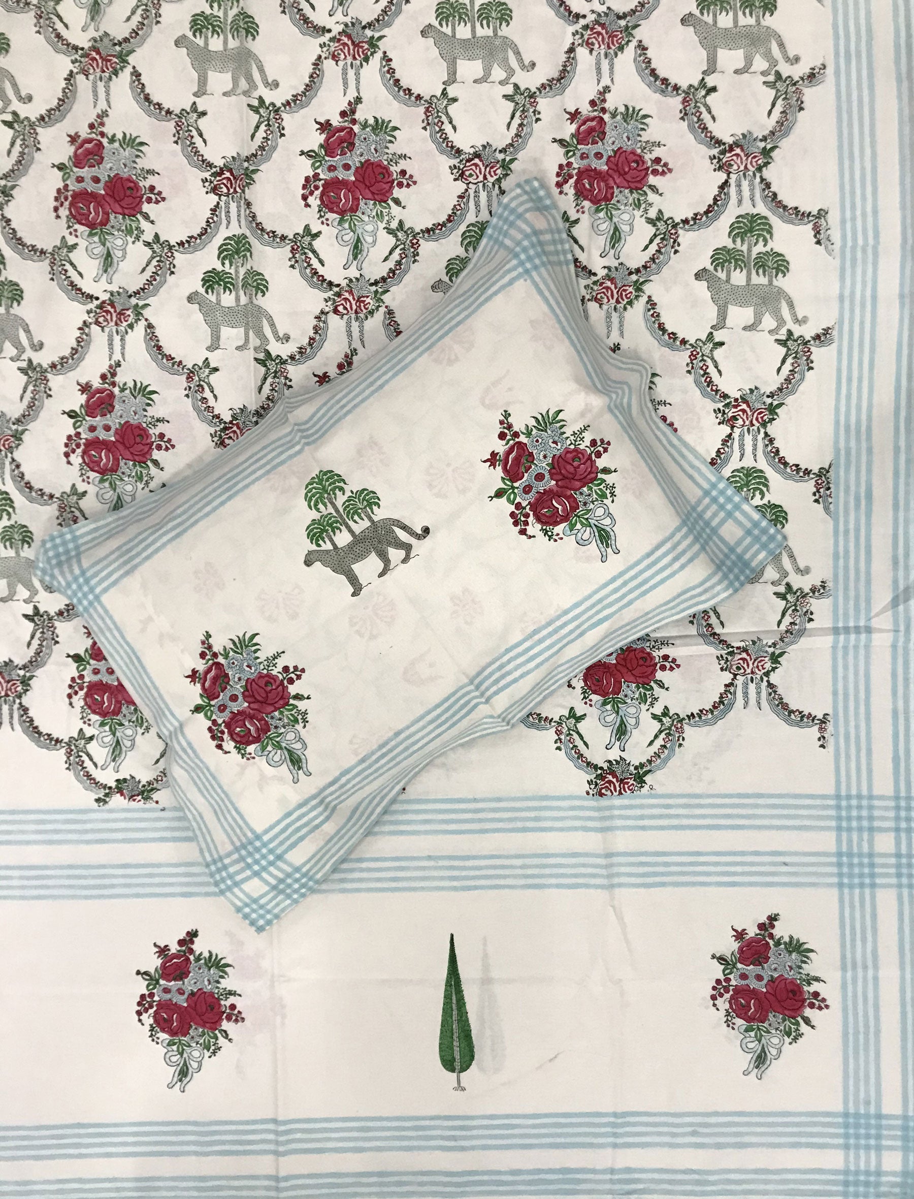 Hand Block Printed Cotton Double Bedsheet With Pillow Covers