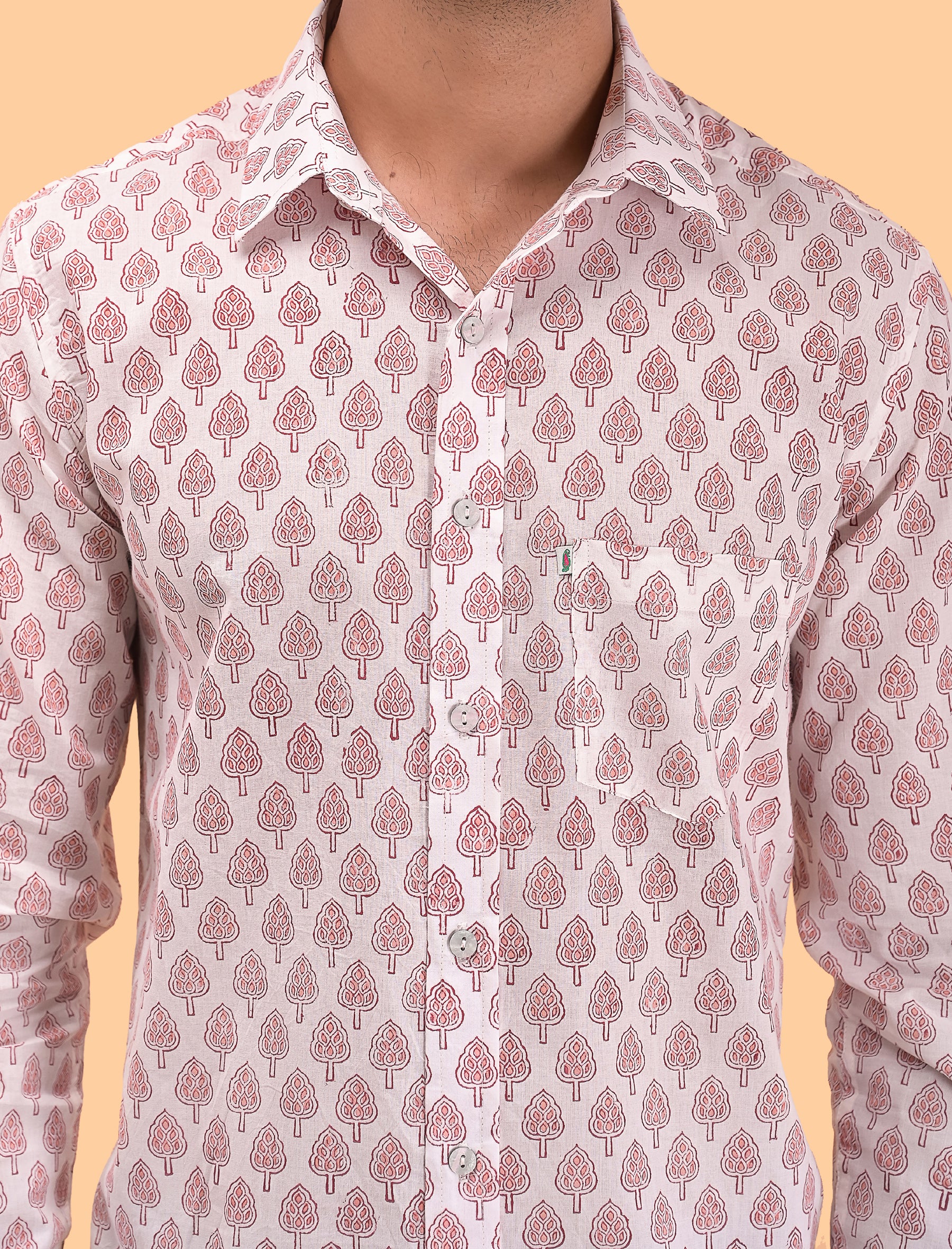 Orange Cotton Printed Full Sleeves Shirt