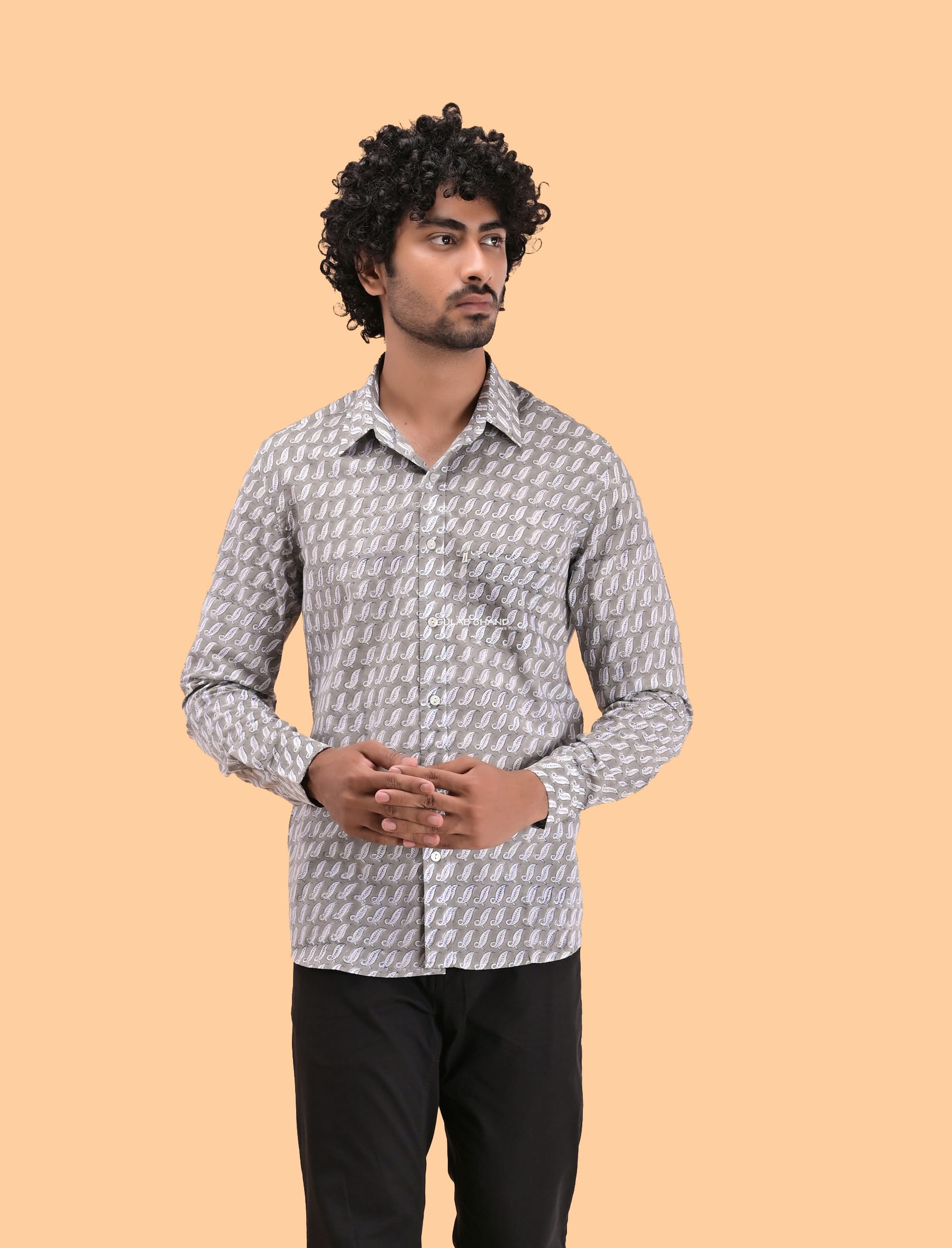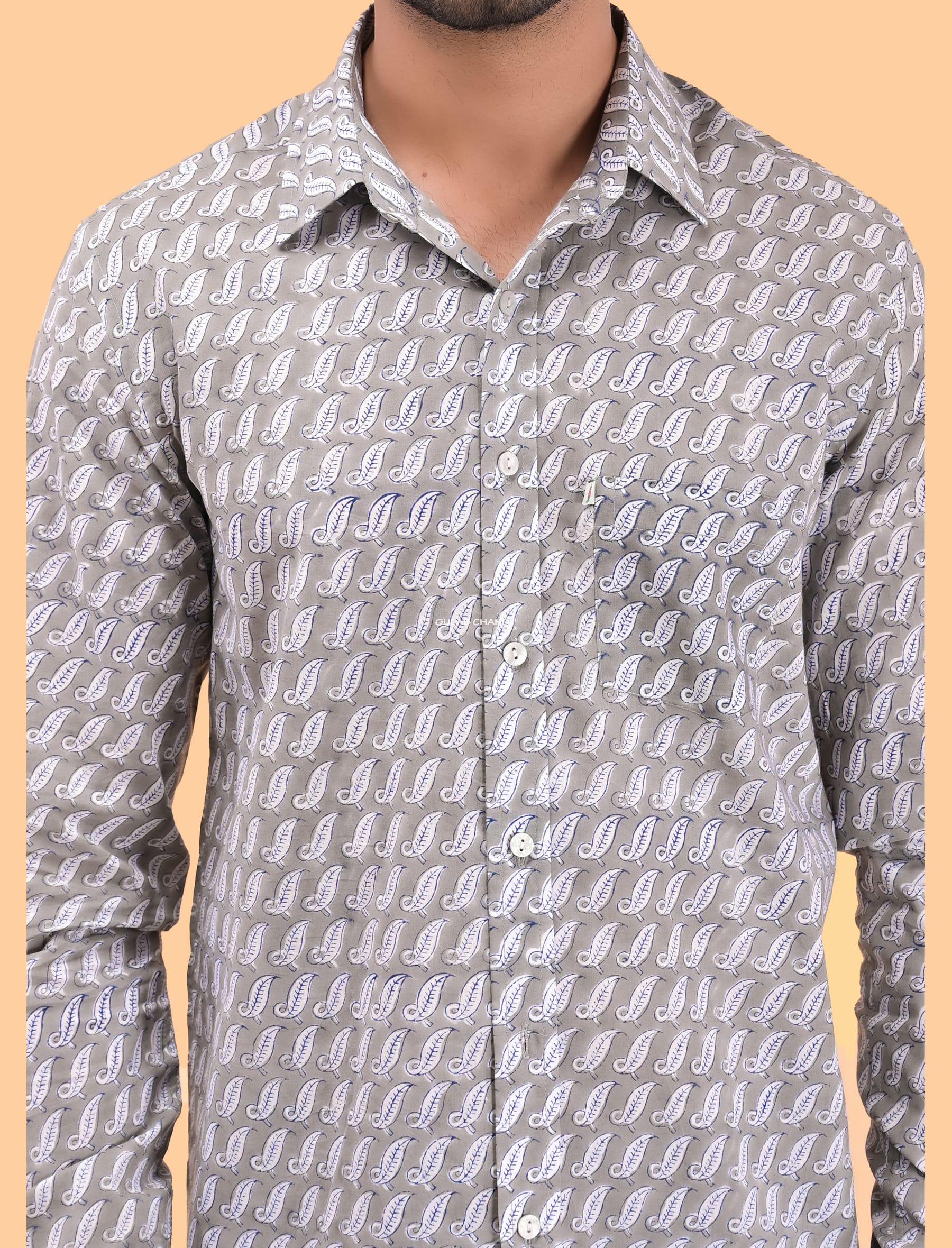 Grey Cotton Printed Full Sleeves Shirt