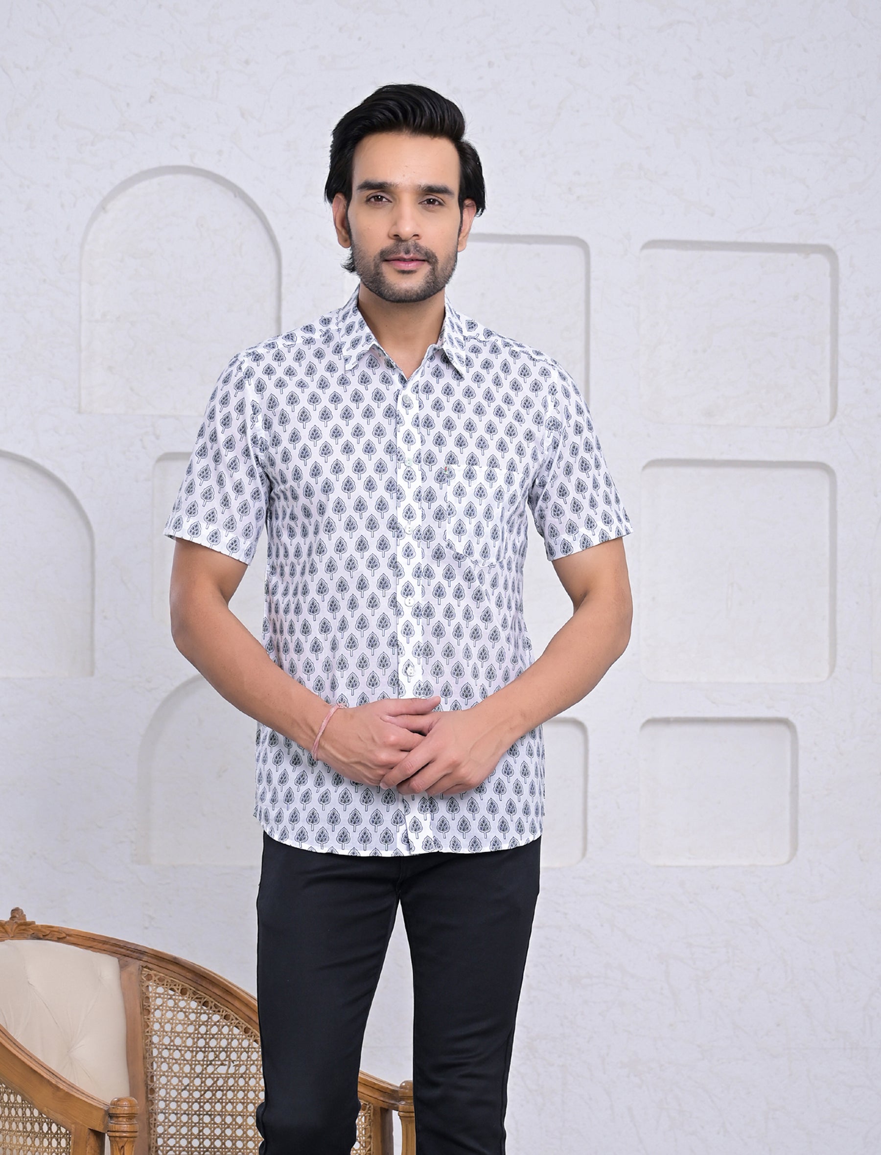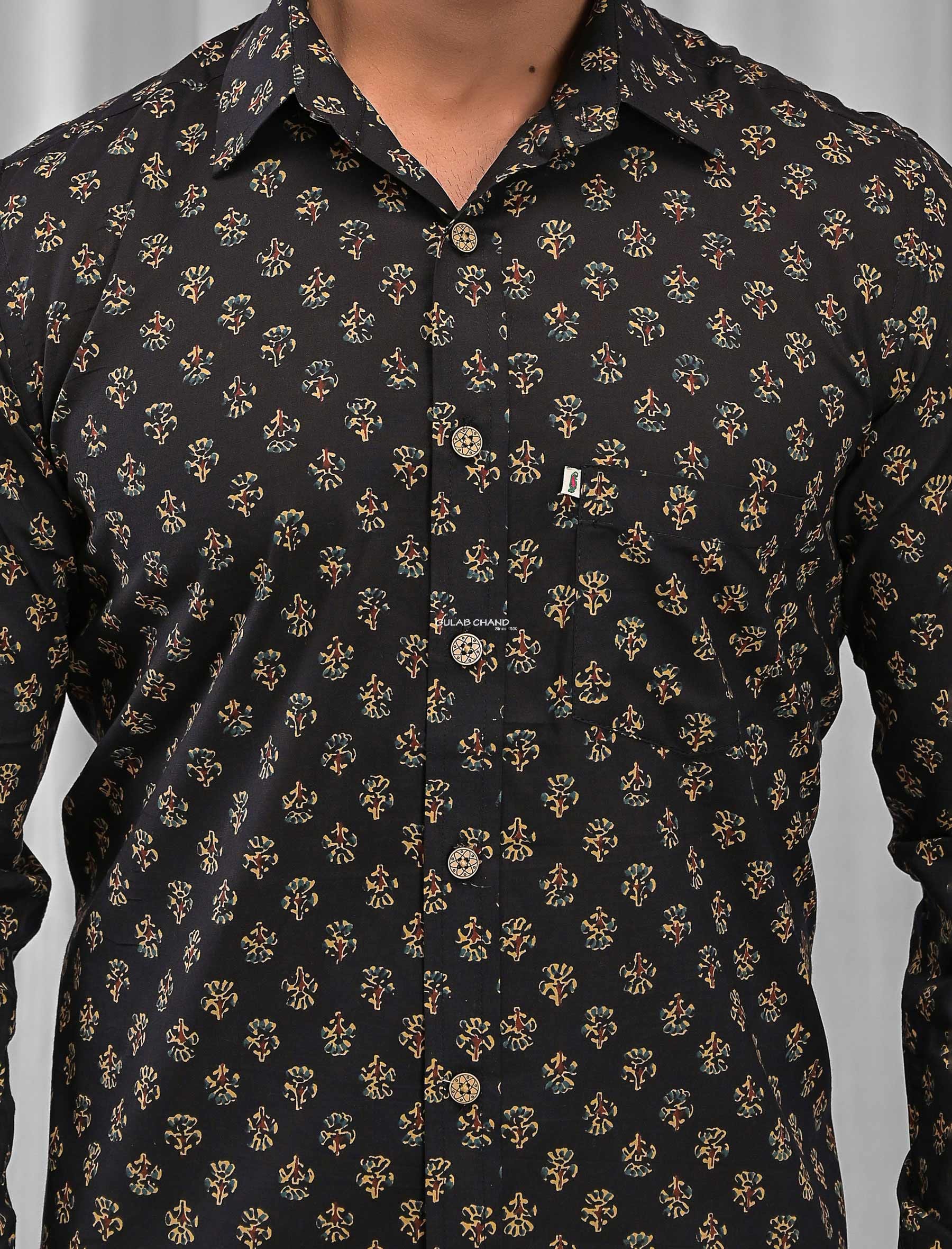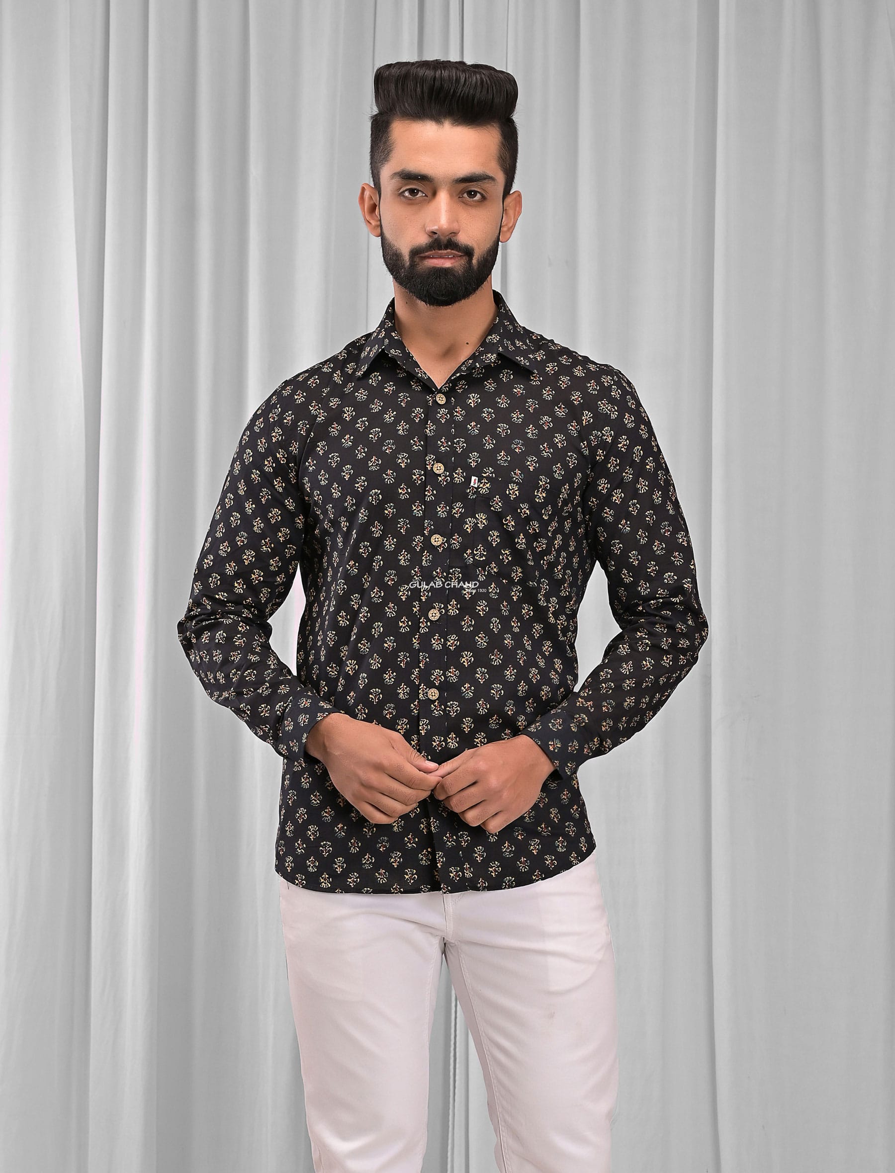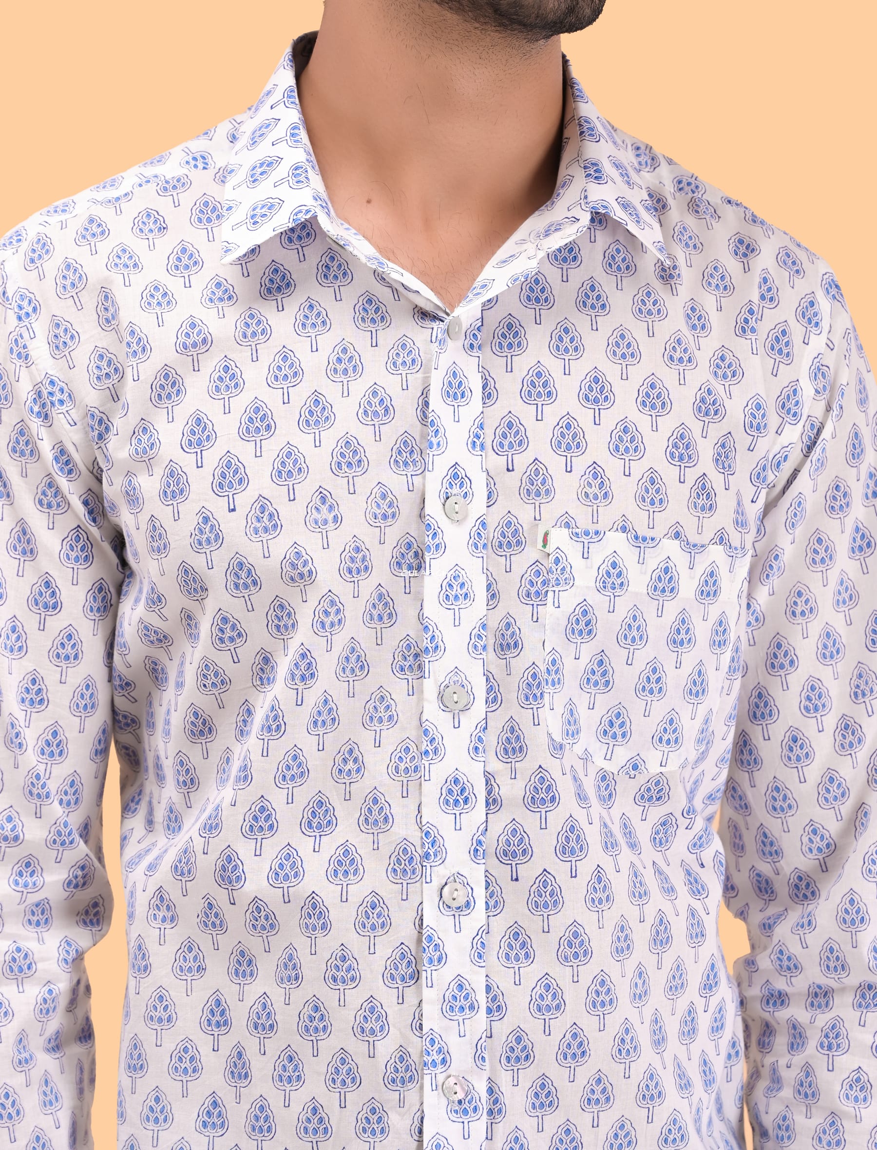 Sea Blue Cotton Printed Full Sleeves Shirt