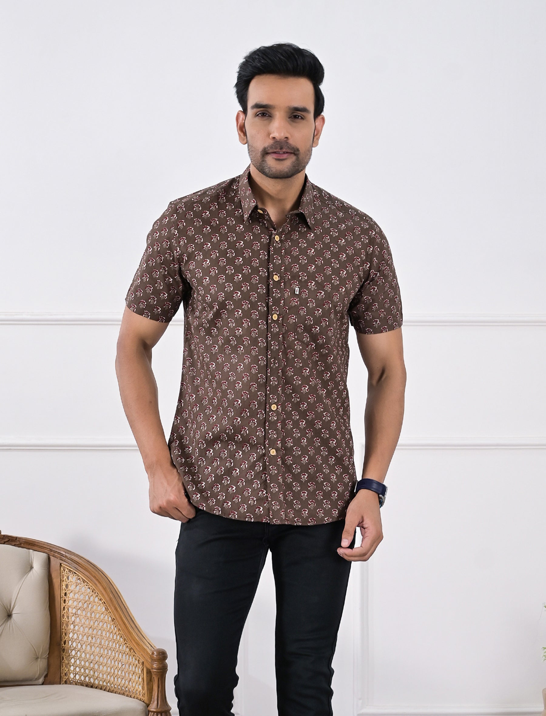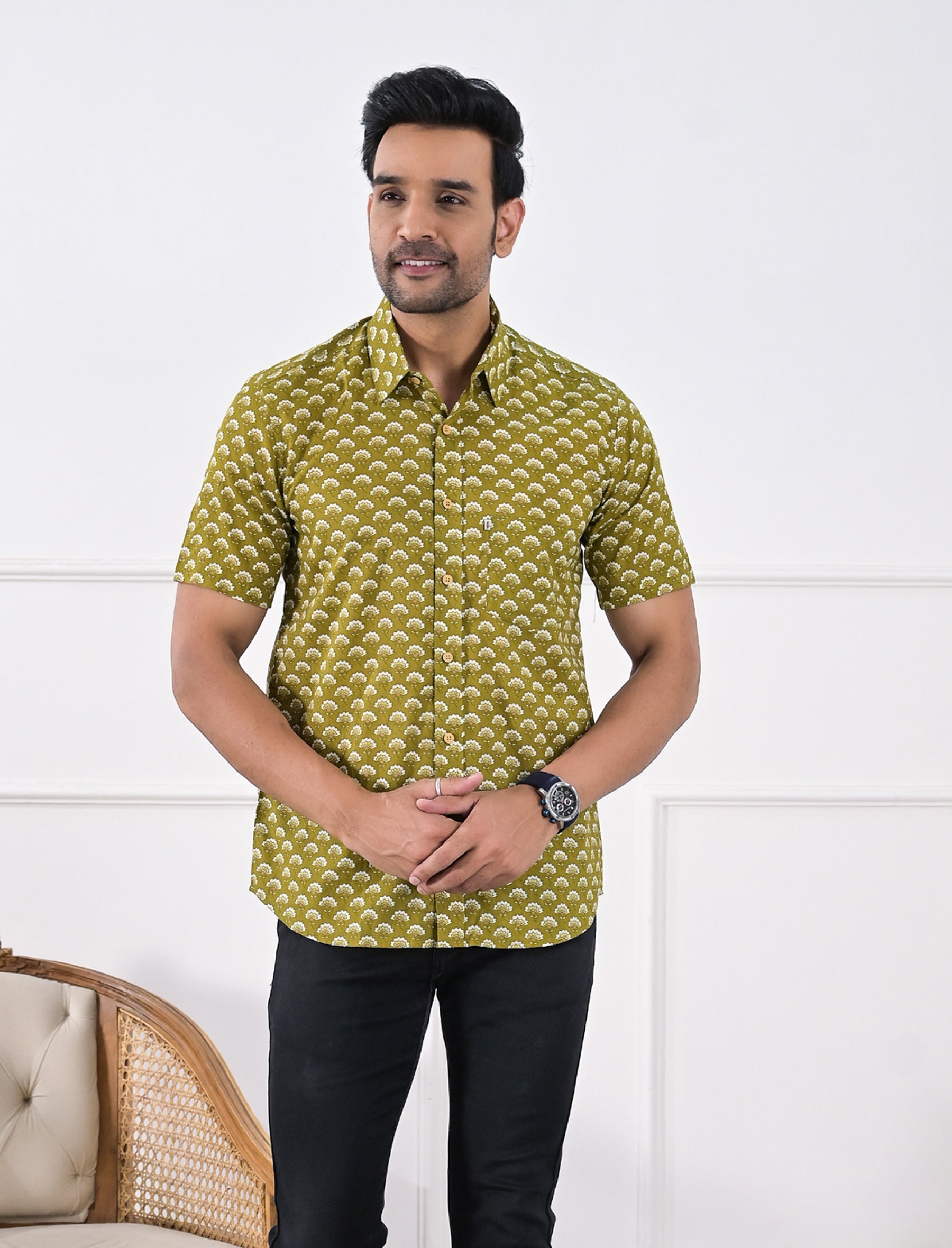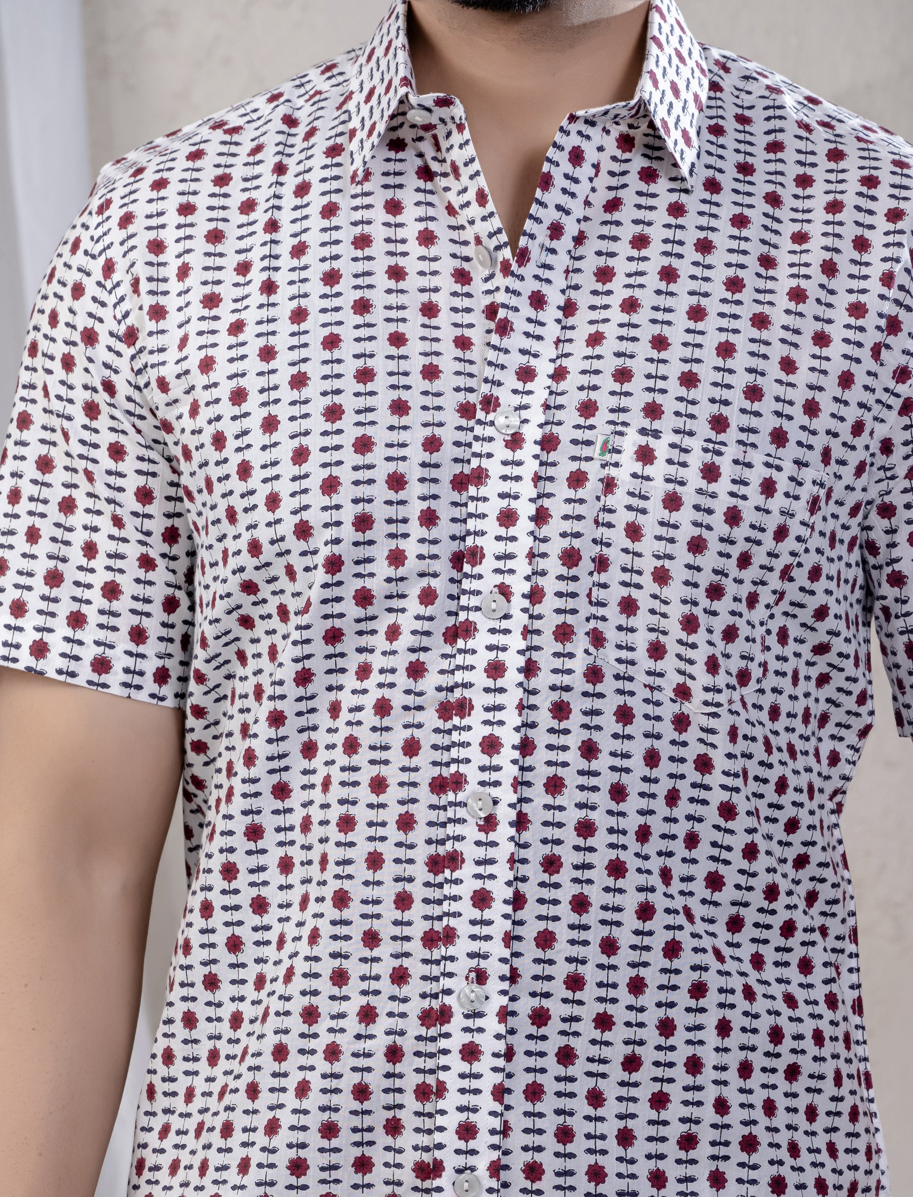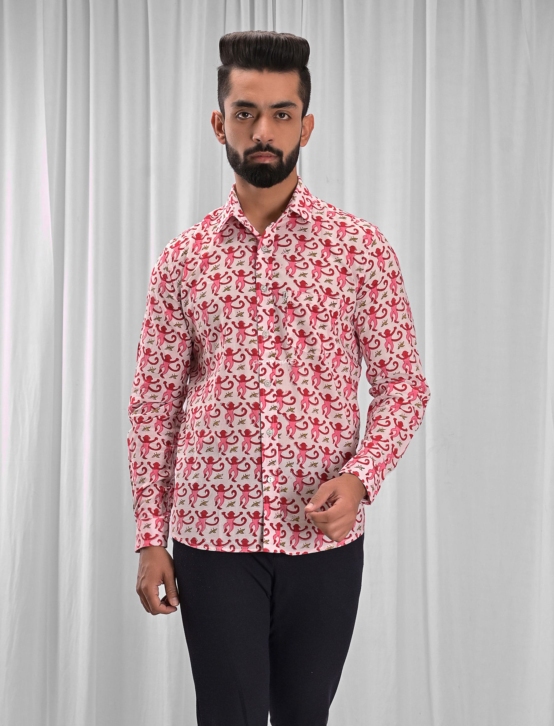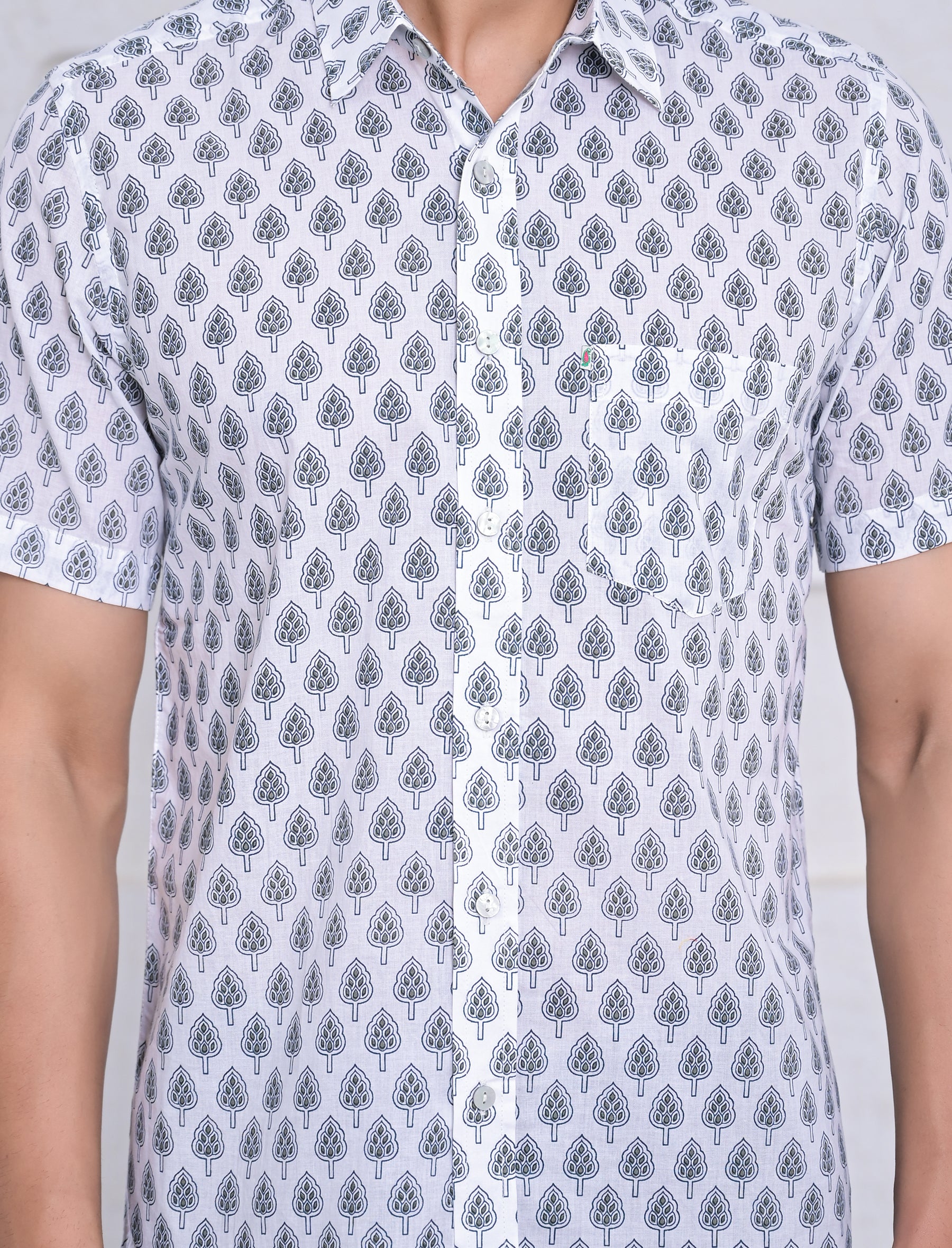 Sea Blue Cotton Printed Full Sleeves Shirt