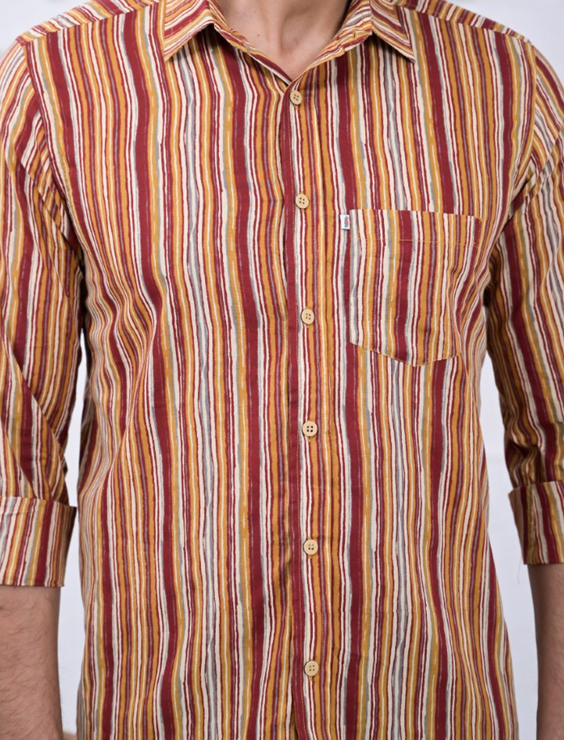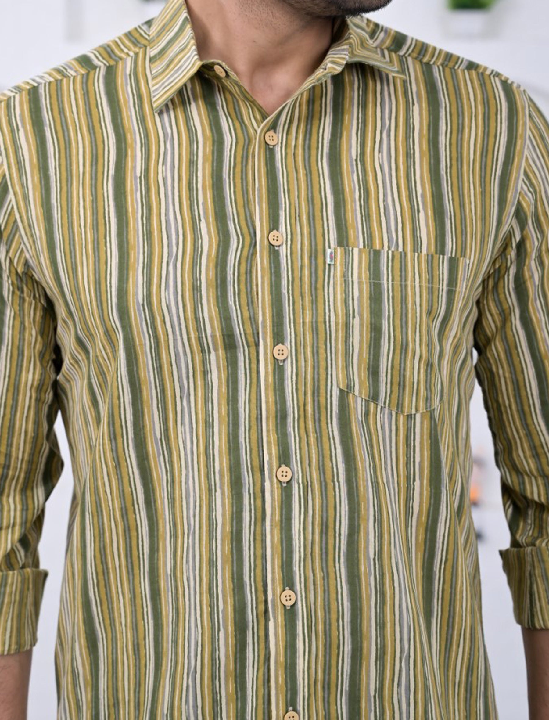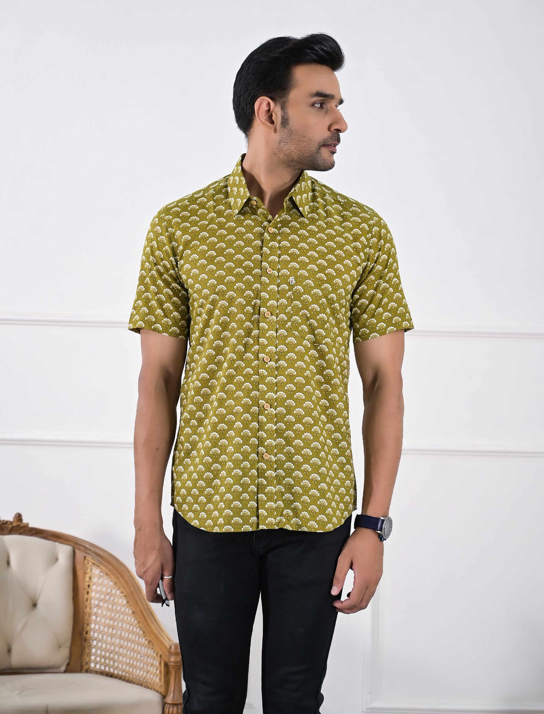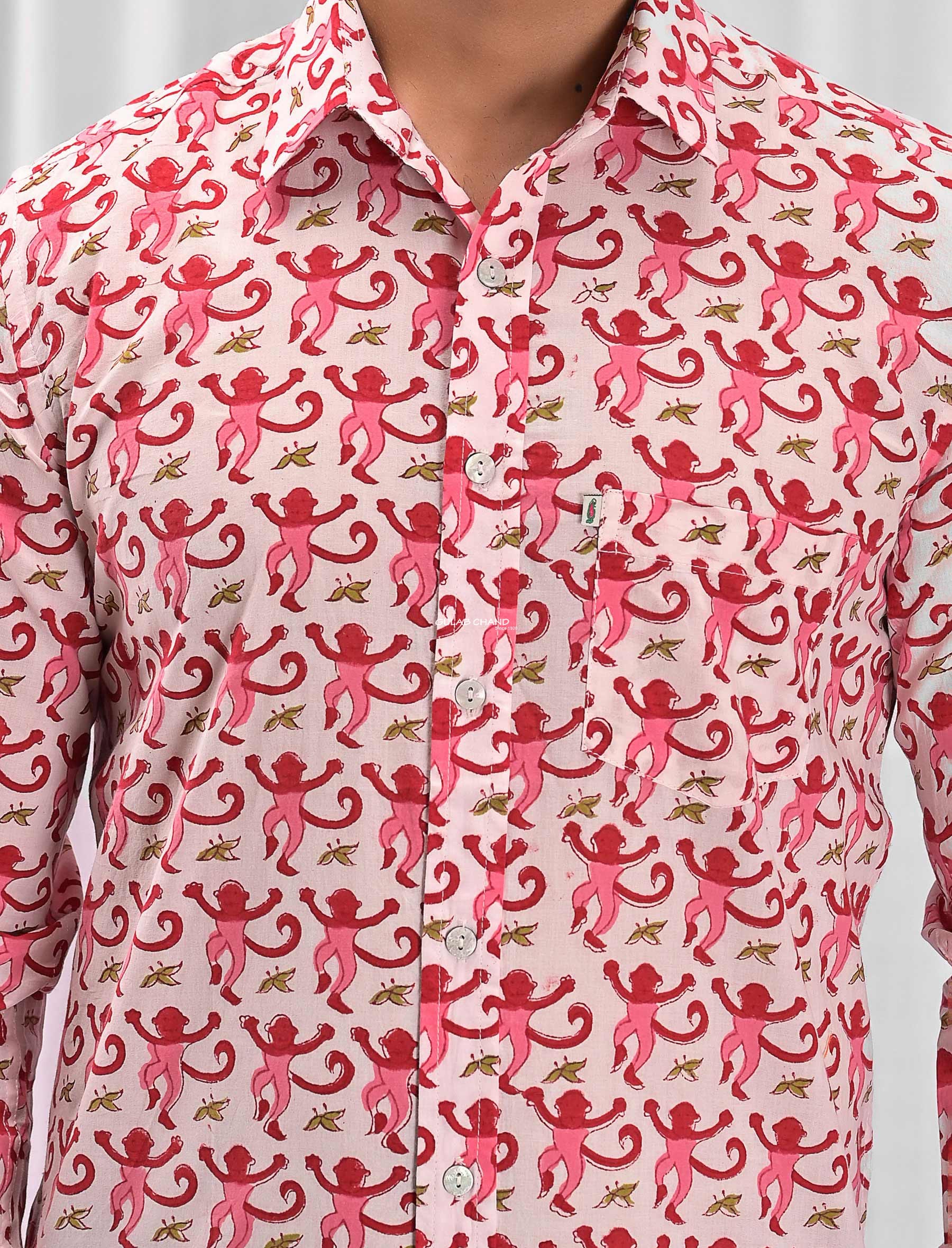 Sea Blue Cotton Printed Full Sleeves Shirt