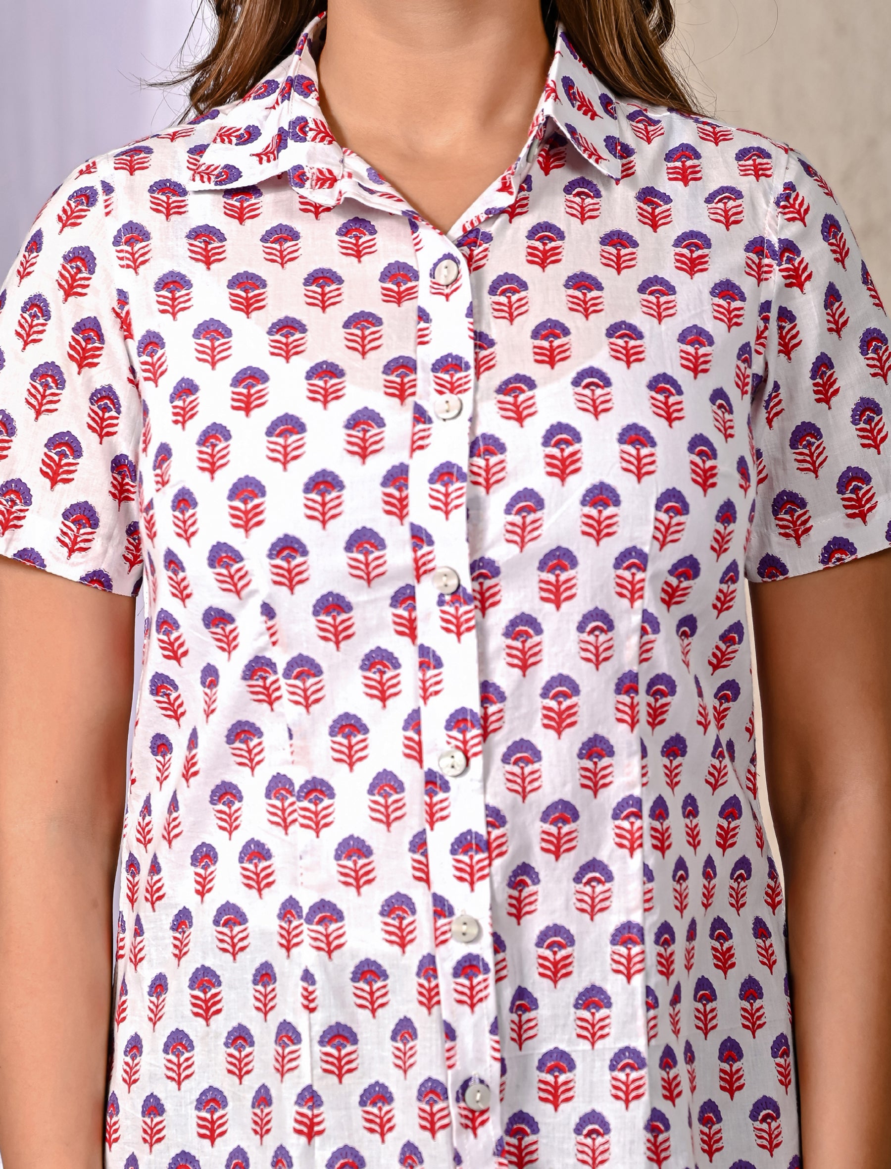 Blue Cotton Printed Half Sleeves Shirt For Women