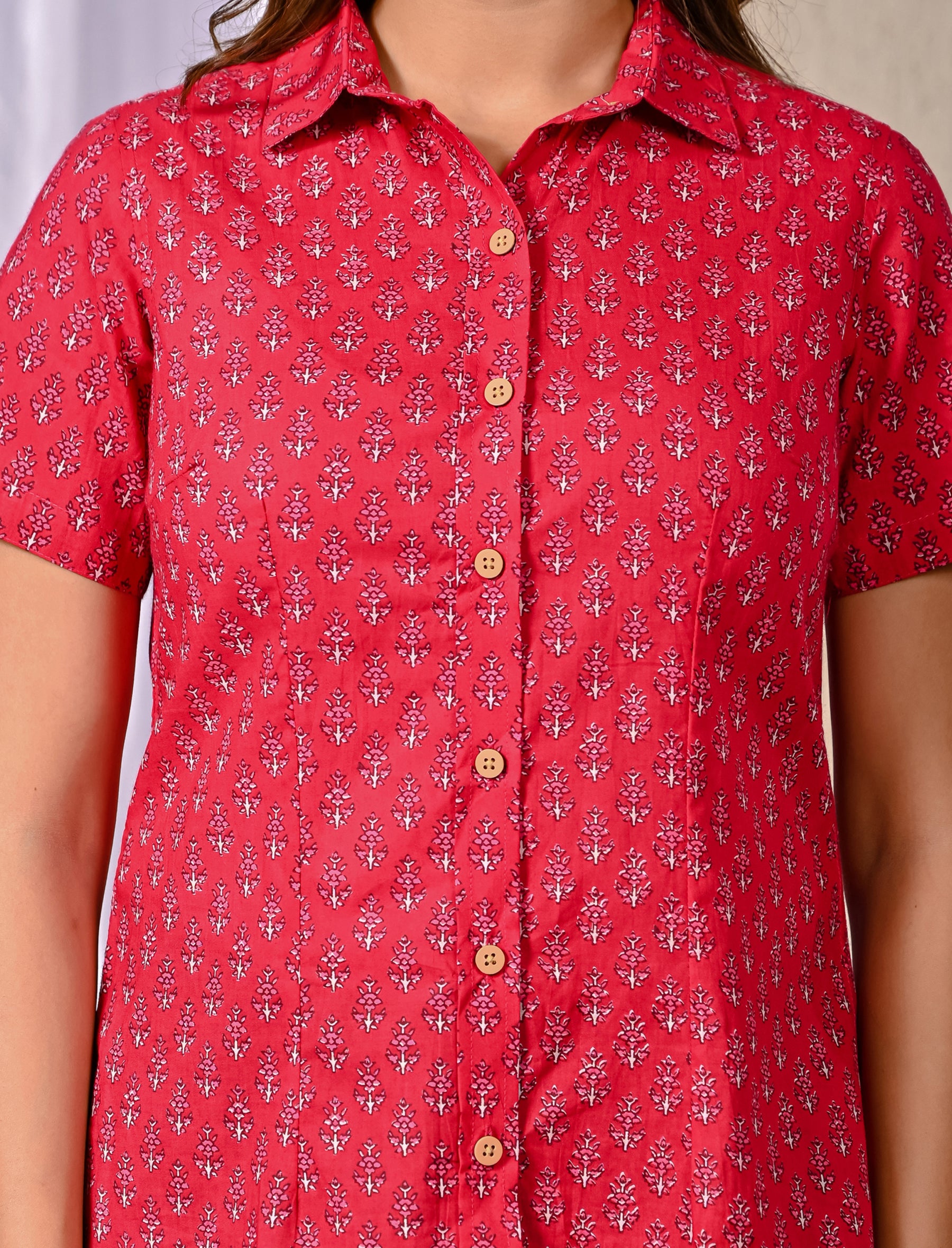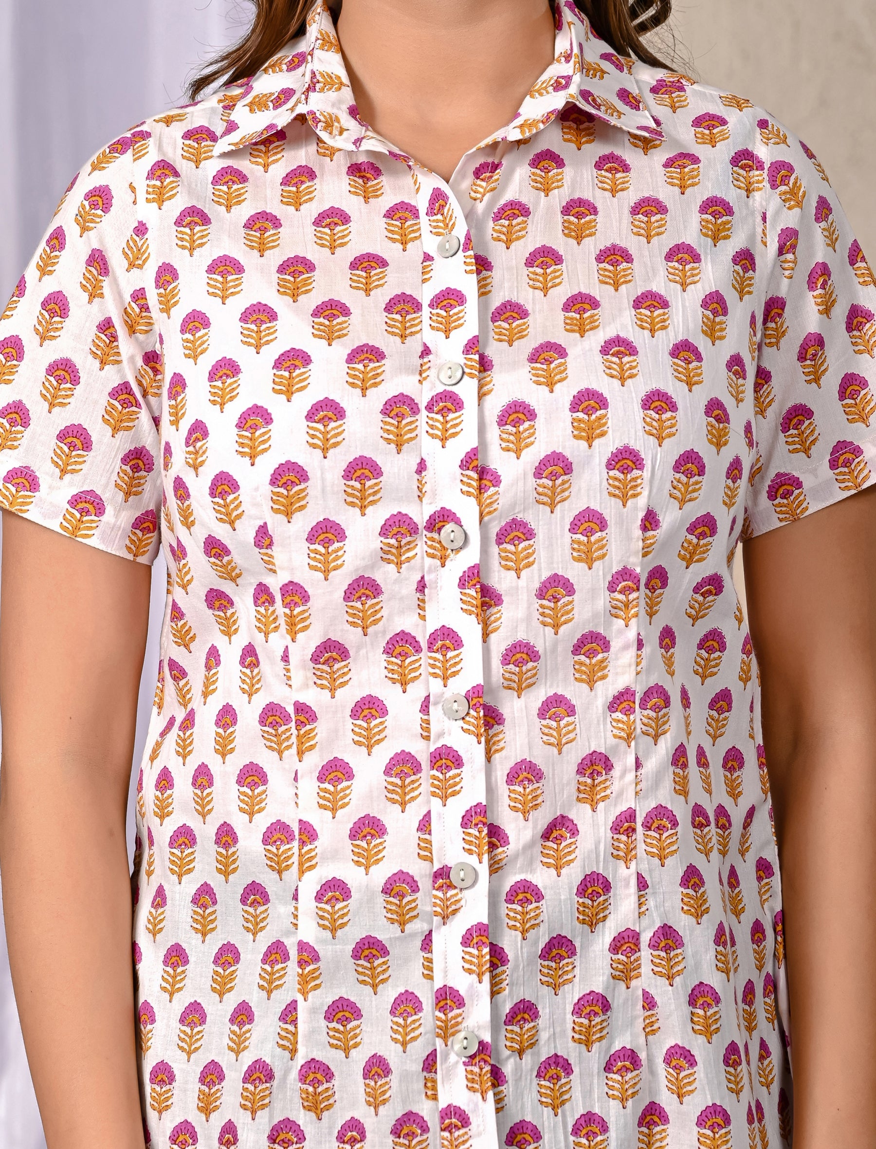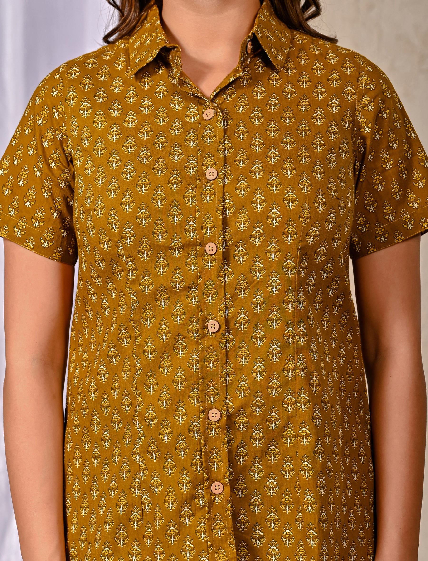 Mustard Cotton Printed Half Sleeves Shirt For Women