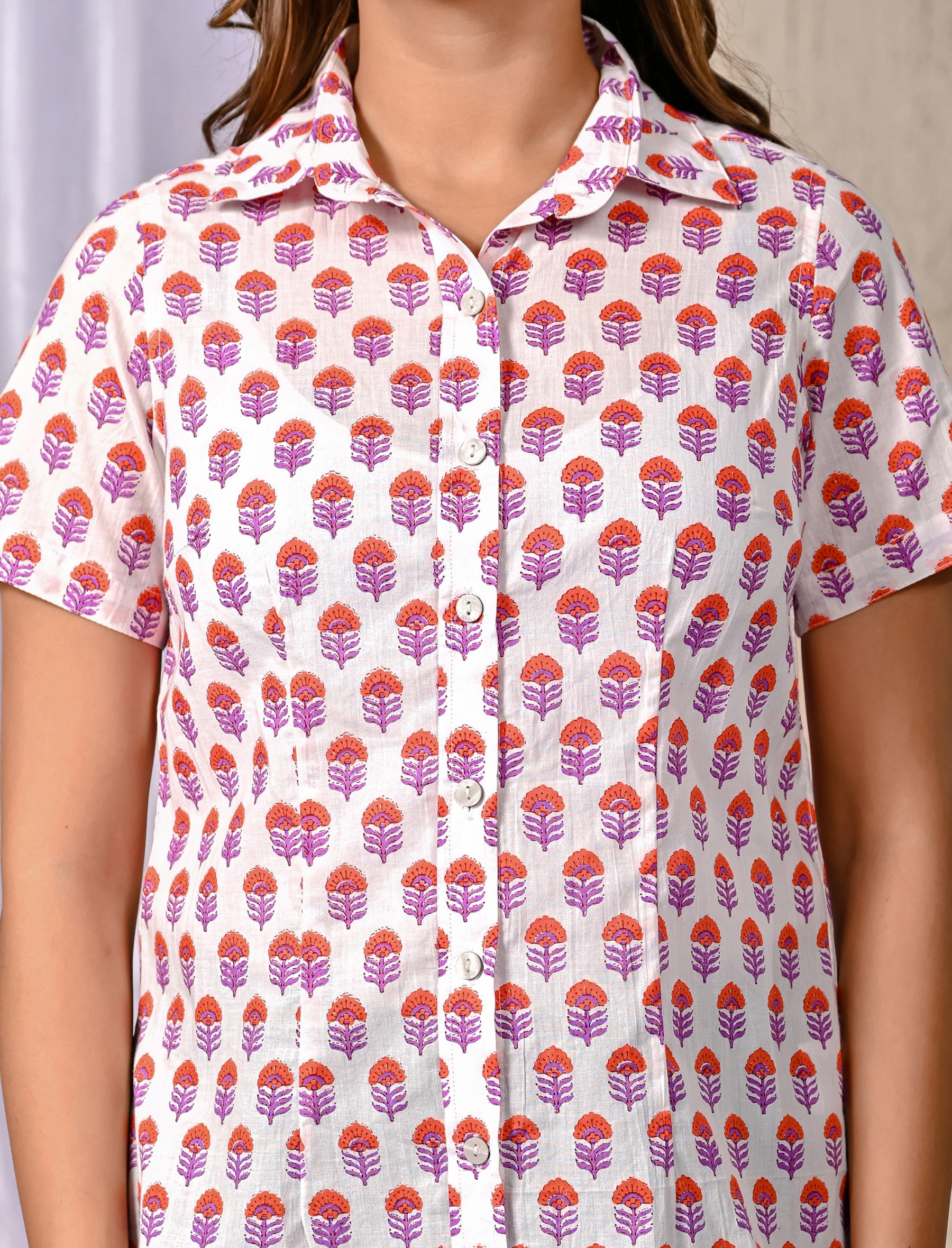 Peach Cotton Printed Full Sleeves Shirt For Women