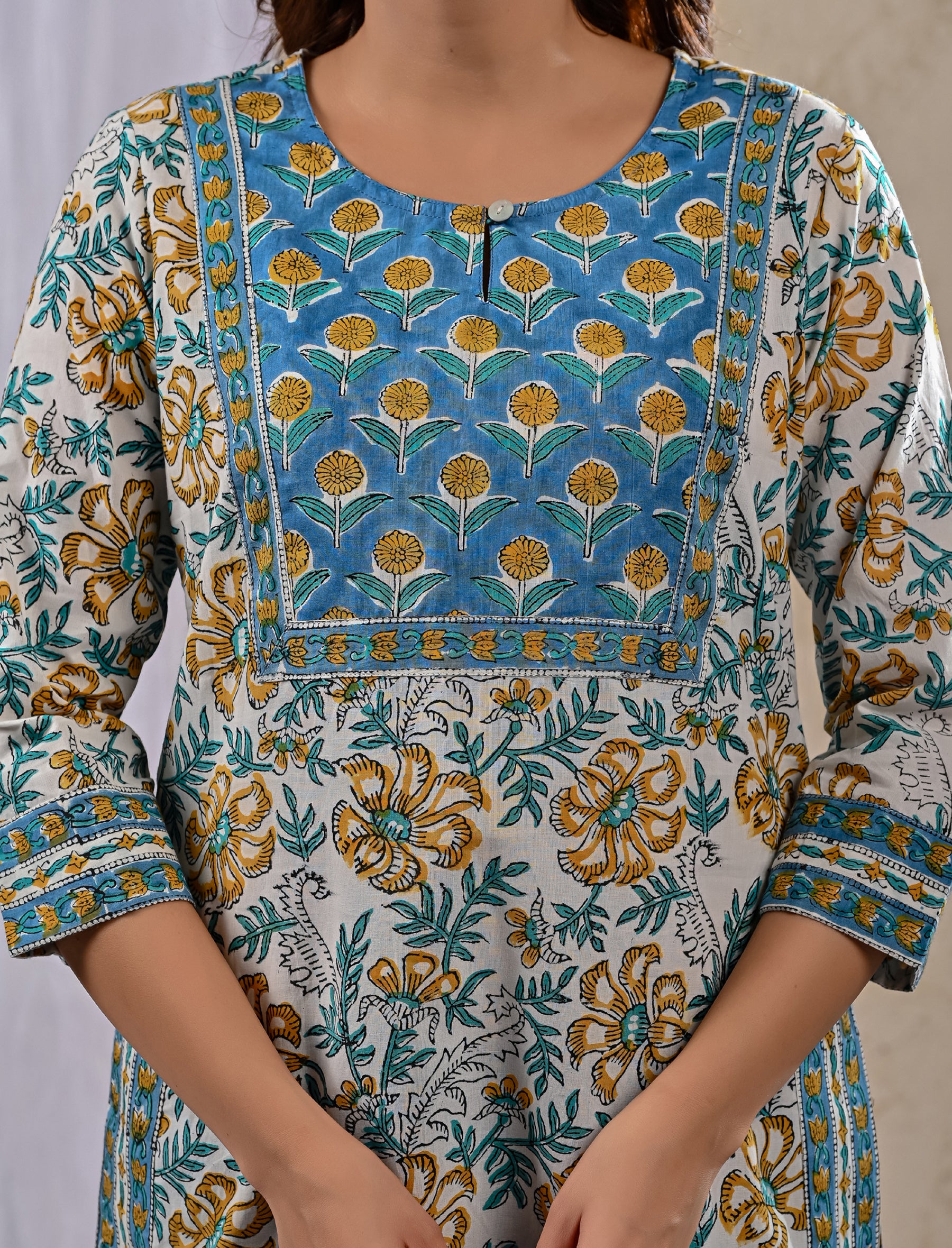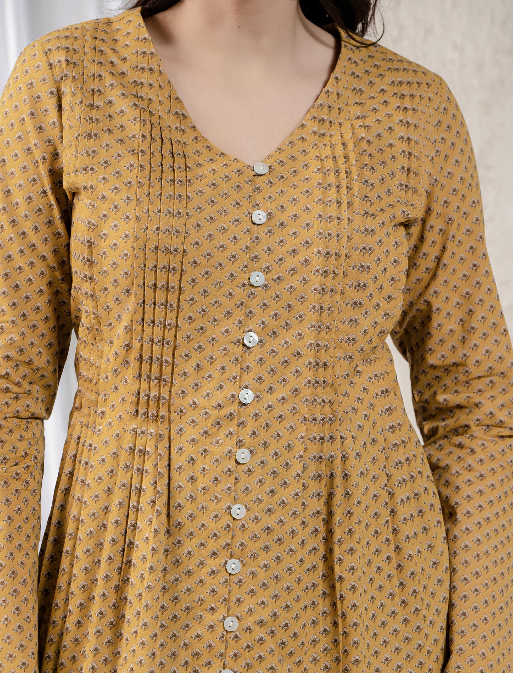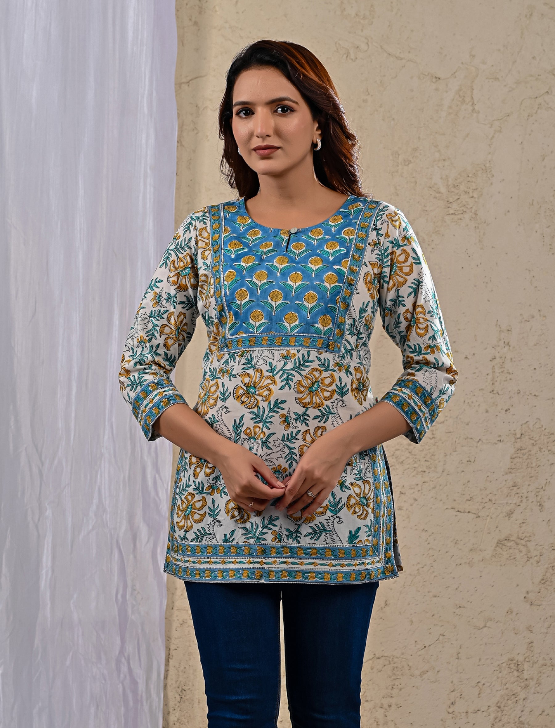 Cream Cotton Printed Full Sleeves Shirt For Women