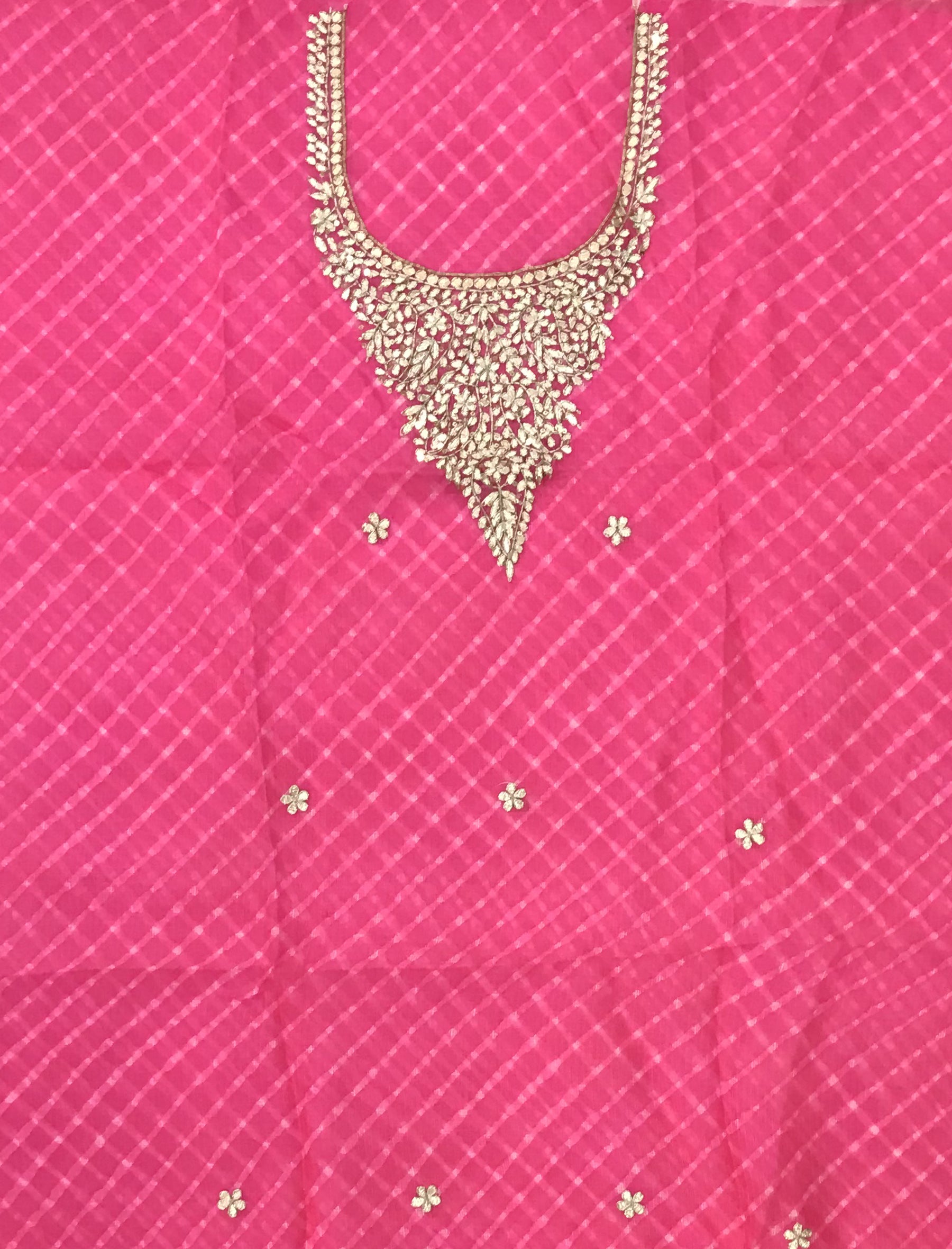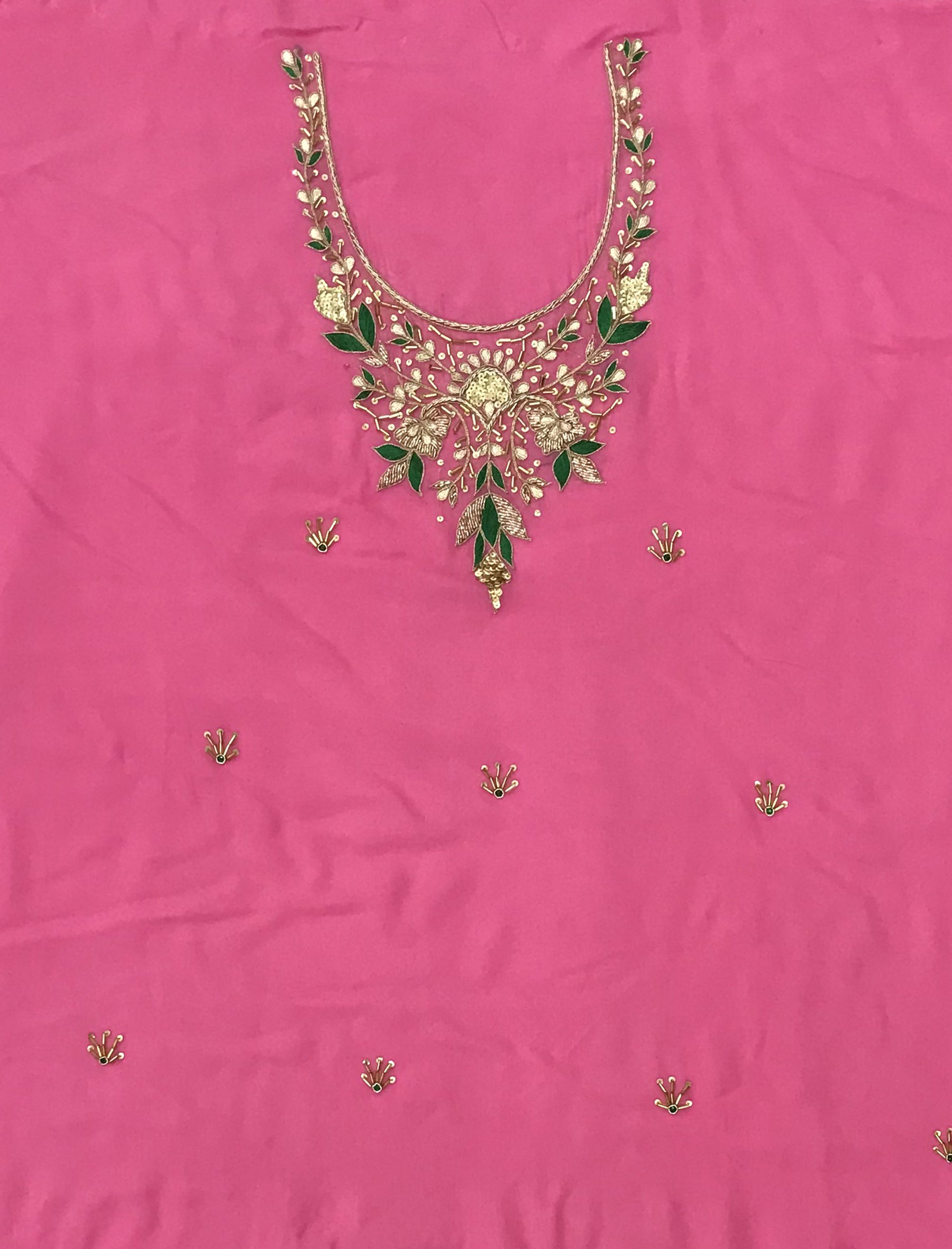 Georgette Unstitched Kurta Fabric With Hand Work On Yoke