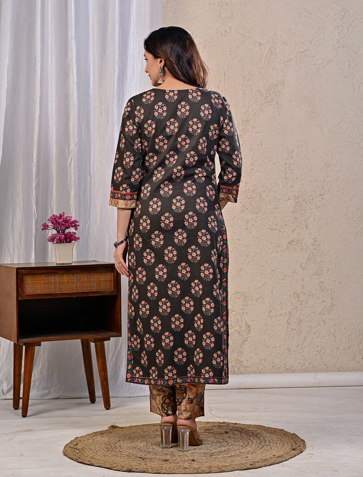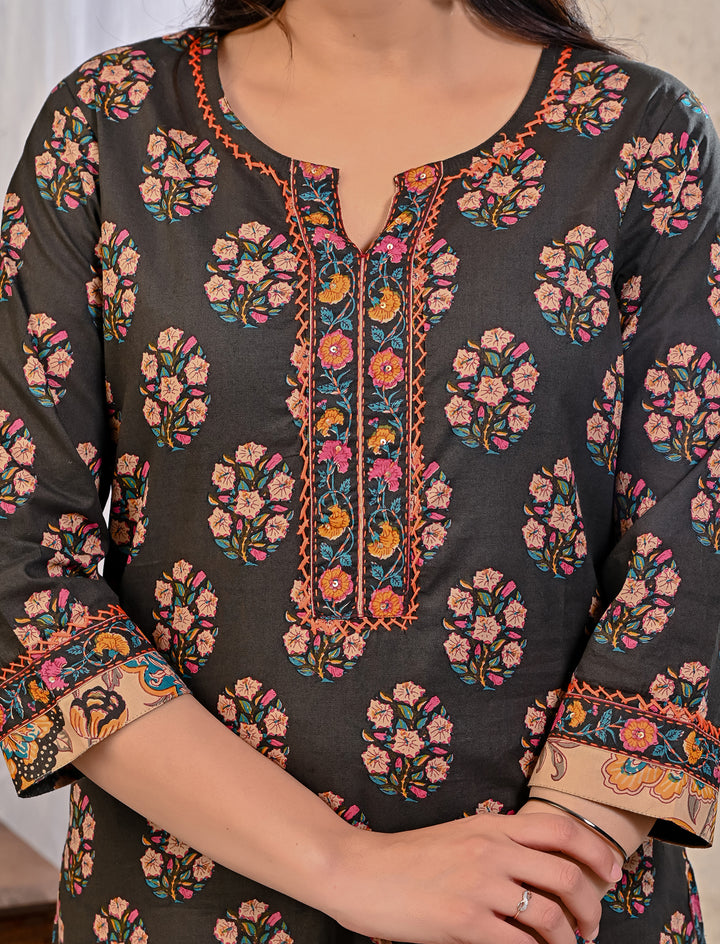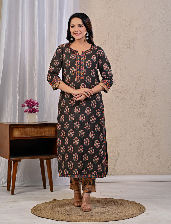 This printed ethnic wear kurta set is presented to you by Gulabchand Prints, A well-known brand in hand block prints from over 9 decades. This exclusively hand stitched kurta set is made of 100% pure cotton fabric with having printed prints over it. The kurta set is best suitable for you to showcase your women hood. Wear this at your ease and the fabric is so smooth to skin that you will love it and the attractive prints adds more charm to the same.