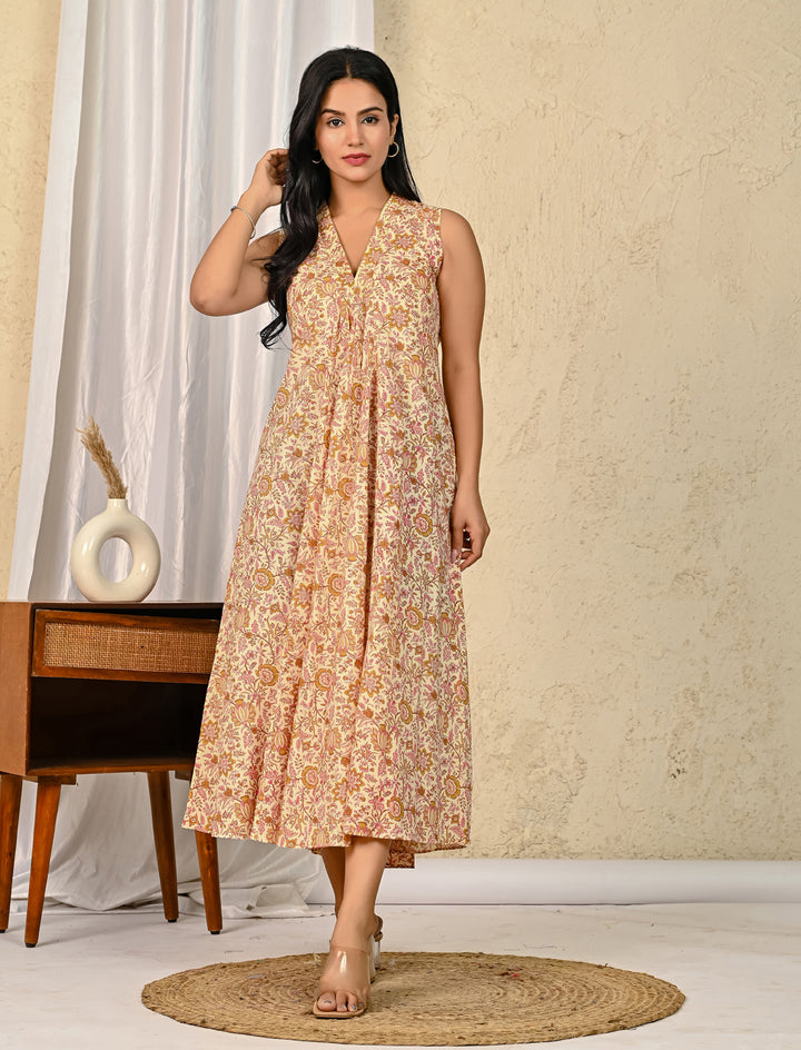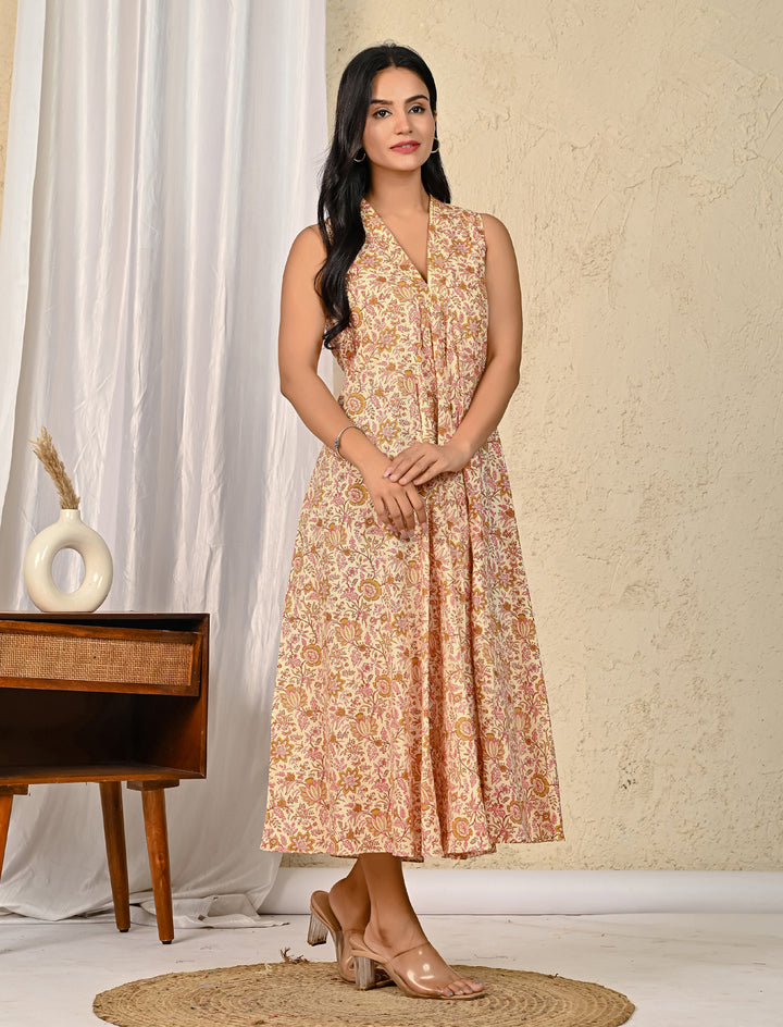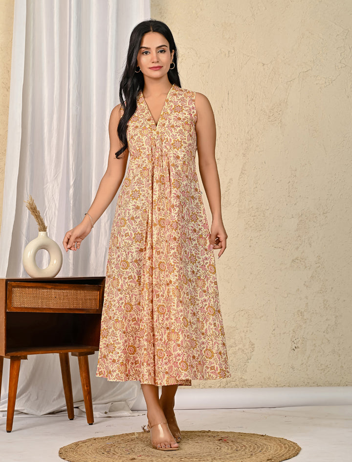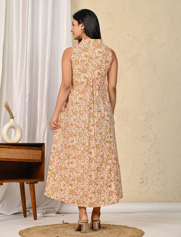 This Cotton Long Dress features a delicate print, providing a unique and elegant design. Made with high-quality cotton, the dress offers a comfortable fit and breathability, perfect for any occasion. Elevate your wardrobe with this timeless and stylish addition.