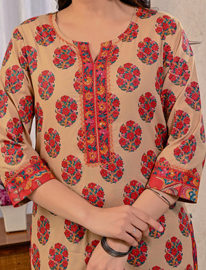 This printed ethnic wear kurta set is presented to you by Gulabchand Prints, A well-known brand in hand block prints from over 9 decades. This exclusively hand stitched kurta set is made of 100% pure cotton fabric with having printed prints over it. The kurta set is best suitable for you to showcase your women hood. Wear this at your ease and the fabric is so smooth to skin that you will love it and the attractive prints adds more charm to the same.
