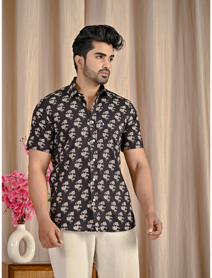 This hand block printed cotton shirt is presented to you by Gulabchand Prints, A well-known brand in hand block prints from over 9 decades. This exclusively hand stitched shirt is made of 100% pure cotton fabric with having hand block printed prints over it. Wear this at your ease and the fabric is so smooth to skin that you will love it and the attractive prints adds more charm to the same.