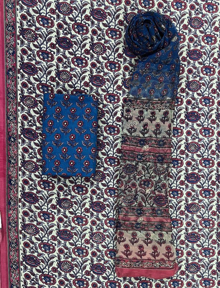 This hand block printed ethnic wear Dress Material is presented to you by Gulabchand Prints, A well-known brand in hand block prints from over 9 decades. This exclusively hand Printed Suit is made of 100% pure cotton fabric with having hand block printed prints over it. This Dress Material is best suitable for you to showcase your womenhood. Wear this at your ease and the fabric is so smooth to skin that you will love it and the attractive prints adds more charm to the same.