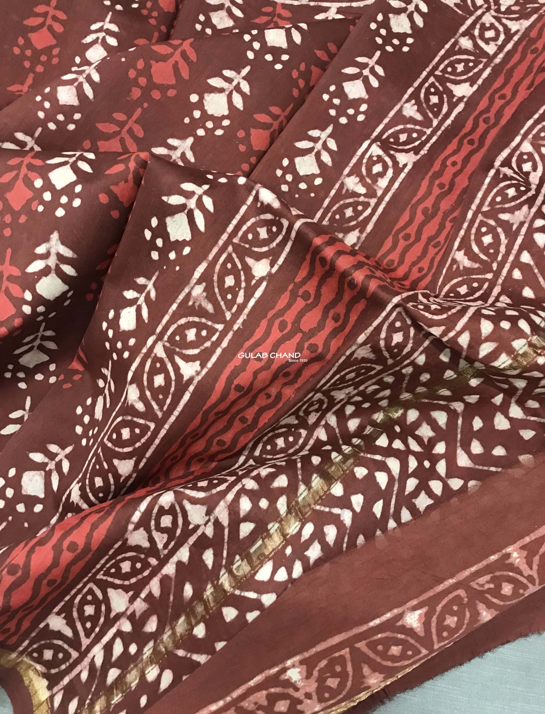 This hand block printed Chanderi dupatta is presented to you by Gulabchand Prints, A well-known brand in hand block prints from over 9 decades. This exclusively hand printed dupatta is made of 100% pure Chanderi fabric with having hand block printed prints over it. The dupatta is best suitable for you to showcase your women hood. Carry this at your ease and the fabric is so smooth to skin that you will love it and the attractive prints adds more charm to the same.