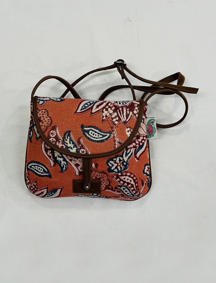 This hand block printed sling is presented to you by Gulabchand Prints, A well-known brand in hand block prints from over 9 decades. This printed sling bag is made of 100% pure cotton fabric on outer cover with having hand block printed prints over it.