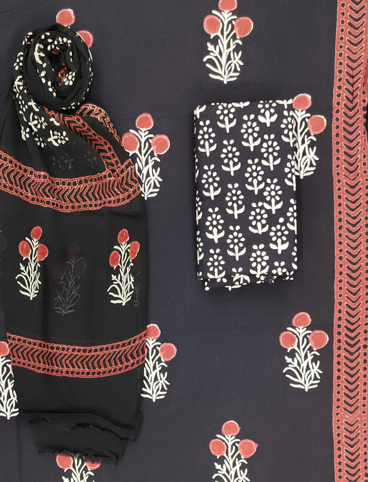 Block Printed Unstitched Dress Material With Chiffon Dupatta