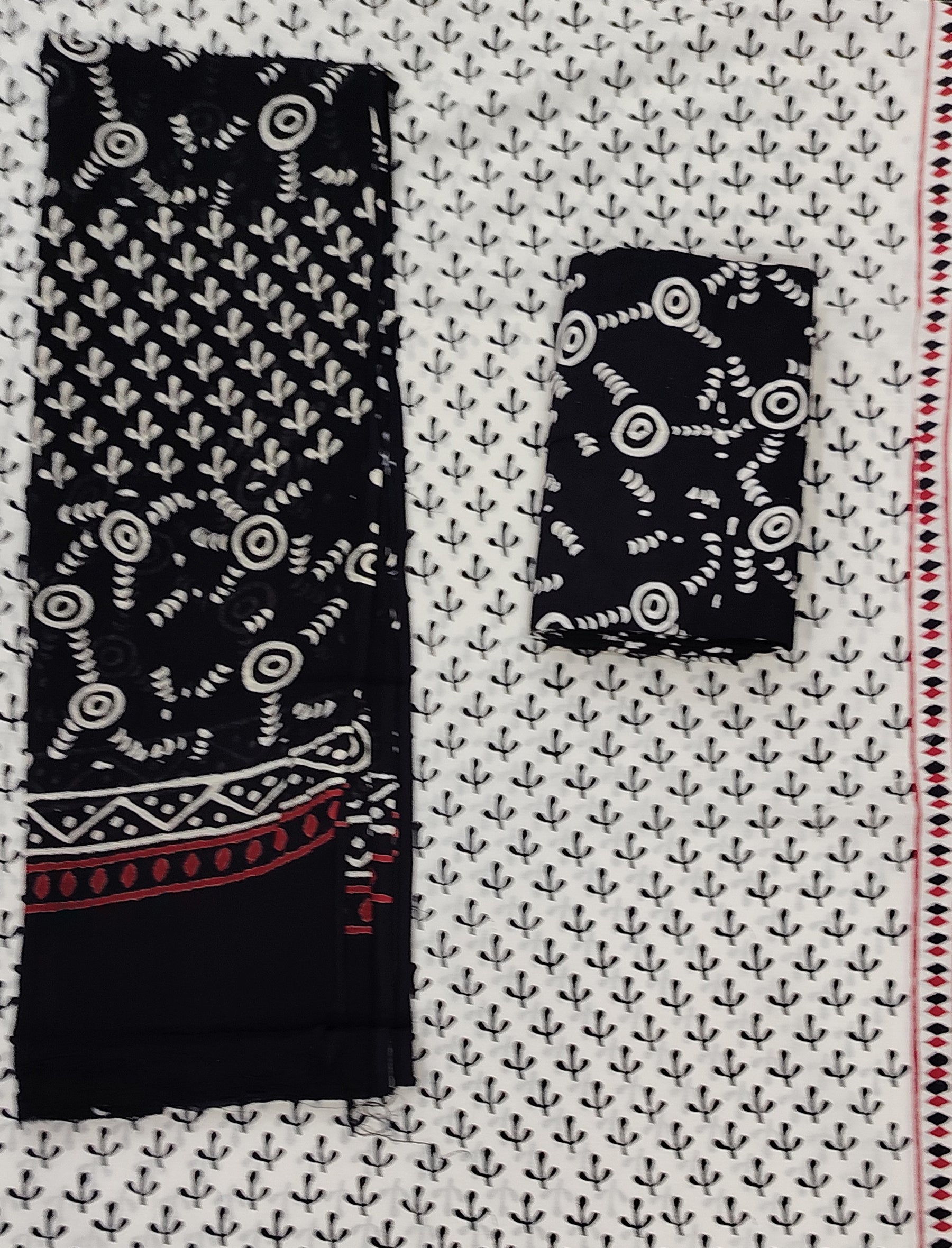 Block Printed Unstitched Dress Material With Cotton Dupatta