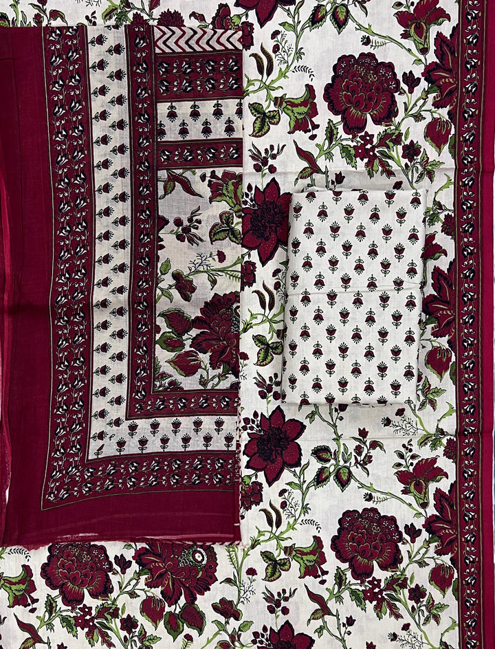 Block Printed Unstitched Dress Material With Cotton Dupatta