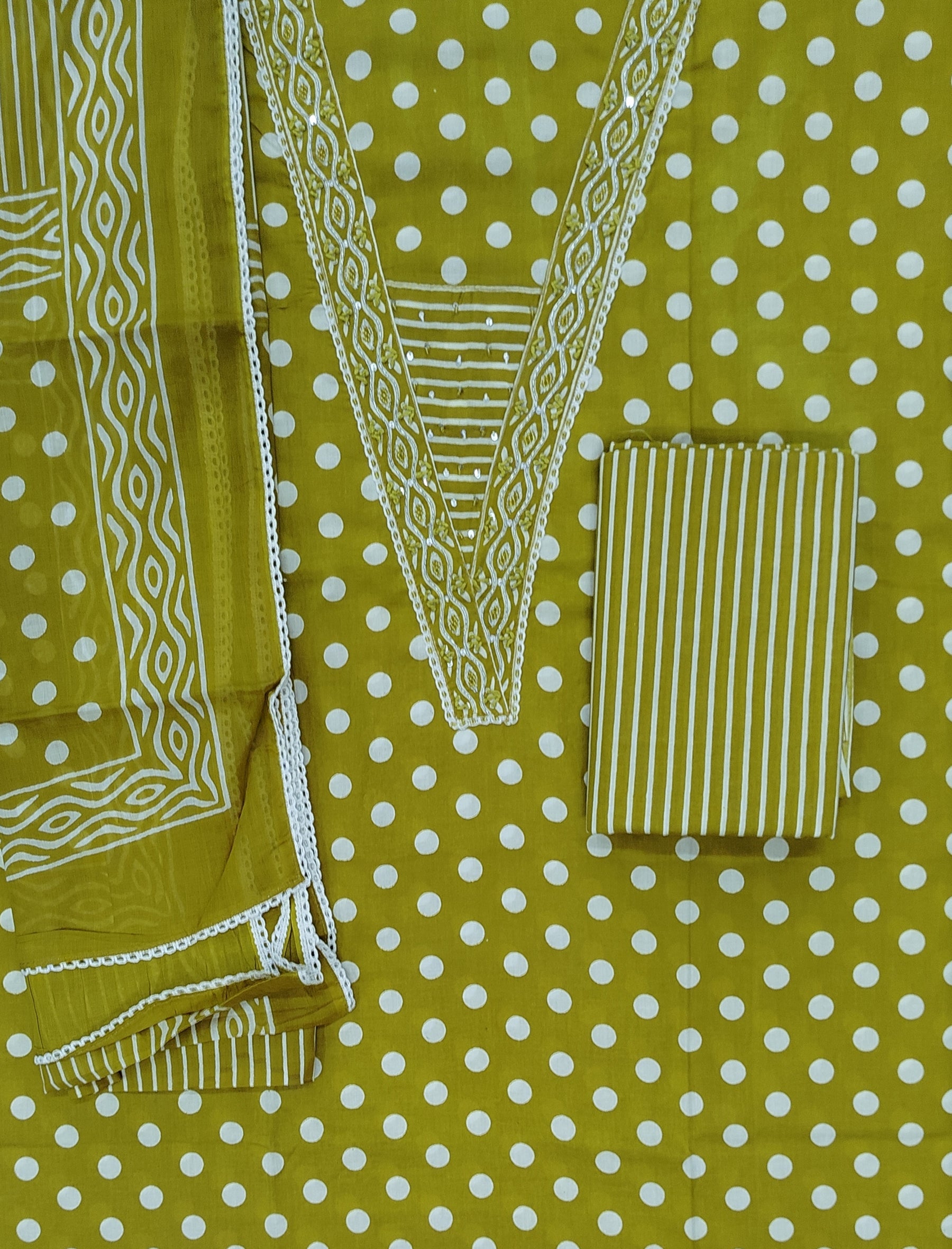 Block Printed Unstitched Dress Material With Hand Work