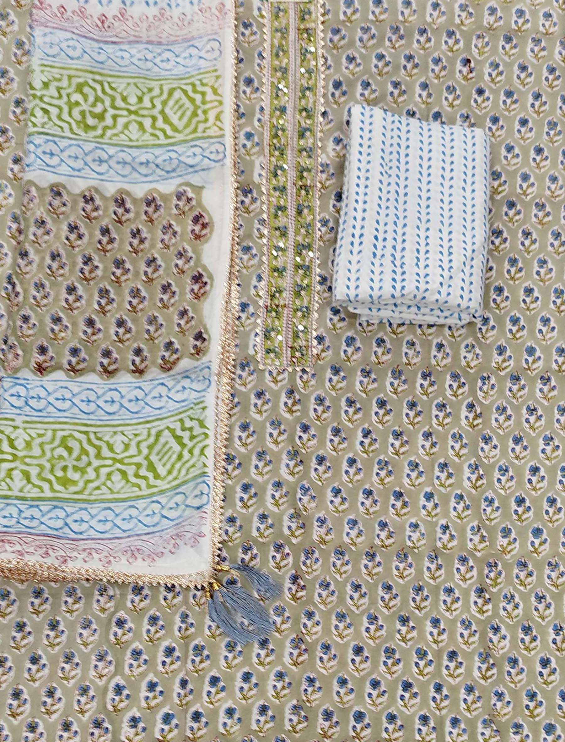 This hand block printed ethnic wear Dress Material is presented to you by Gulabchand Prints, A well-known brand in hand block prints from over 9 decades. This exclusively hand Printed Suit is made of 100% pure cotton fabric with having hand block printed prints over it. This Dress Material is best suitable for you to showcase your womenhood. Wear this at your ease and the fabric is so smooth to skin that you will love it and the attractive prints adds more charm to the same.