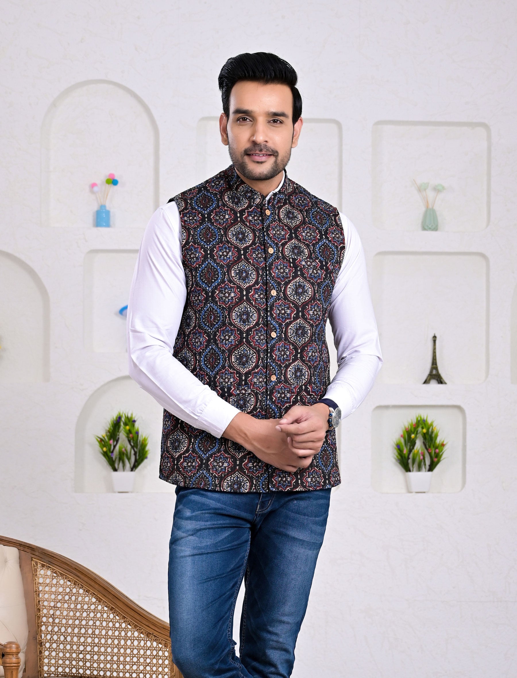 This printed jacket is presented to you by Gulabchand Prints, A well-known brand in hand block prints from over 9 decades. This exclusively hand stitched jacket is made of 100% pure cotton fabric with having printed prints over it. Wear this at your ease and the fabric is so smooth to skin that you will love it and the attractive prints adds more charm to the same.