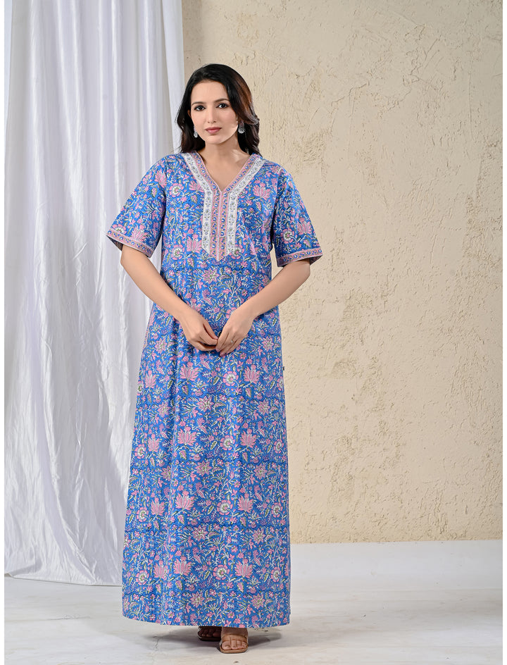 This hand block printed night is made of best quality cotton fabric with immersive prints and fancy designs.