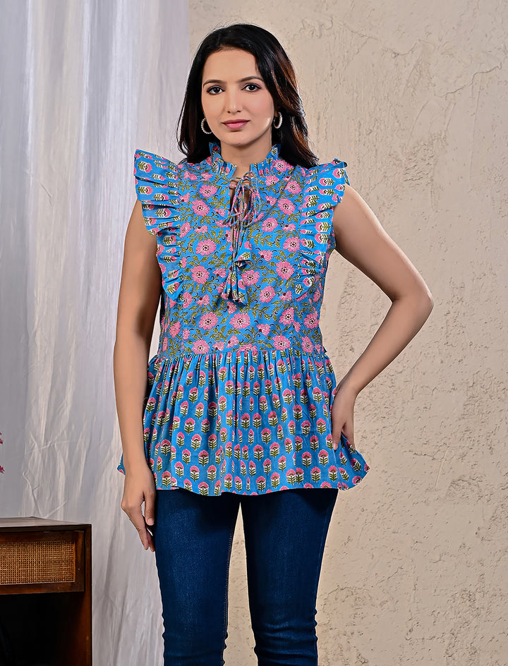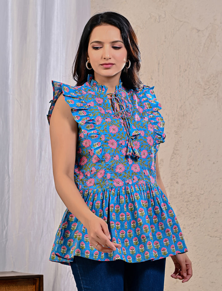 Blue Jaal Cotton Printed Top