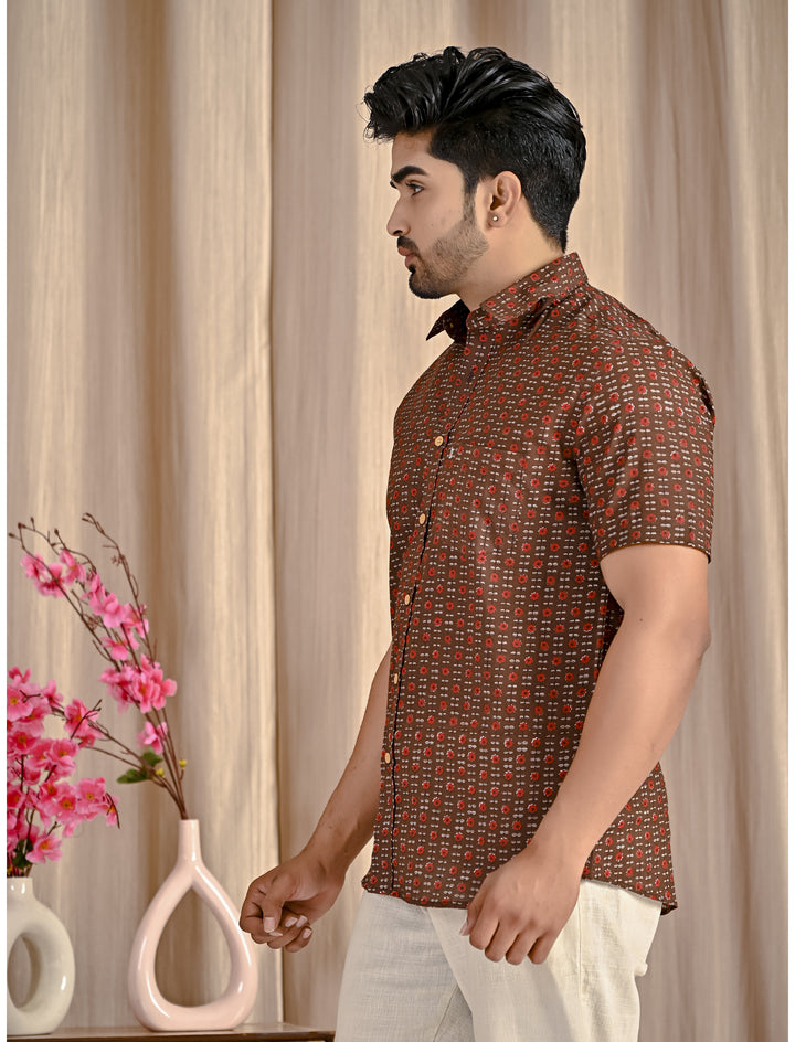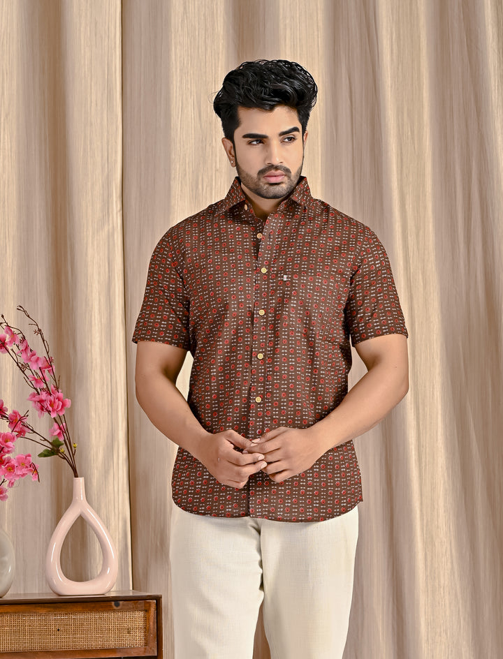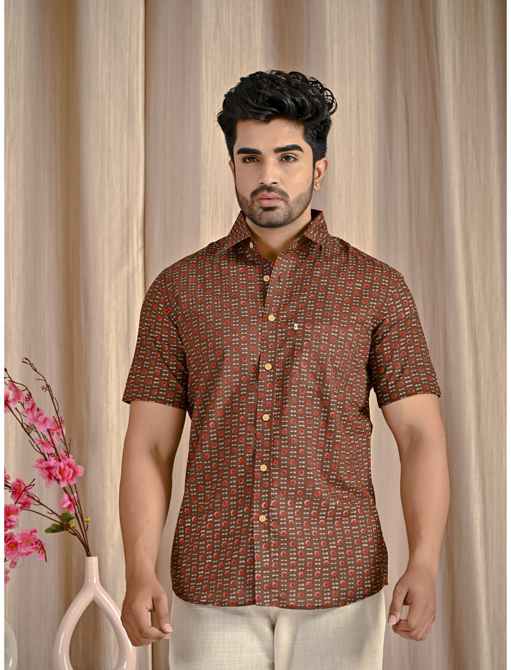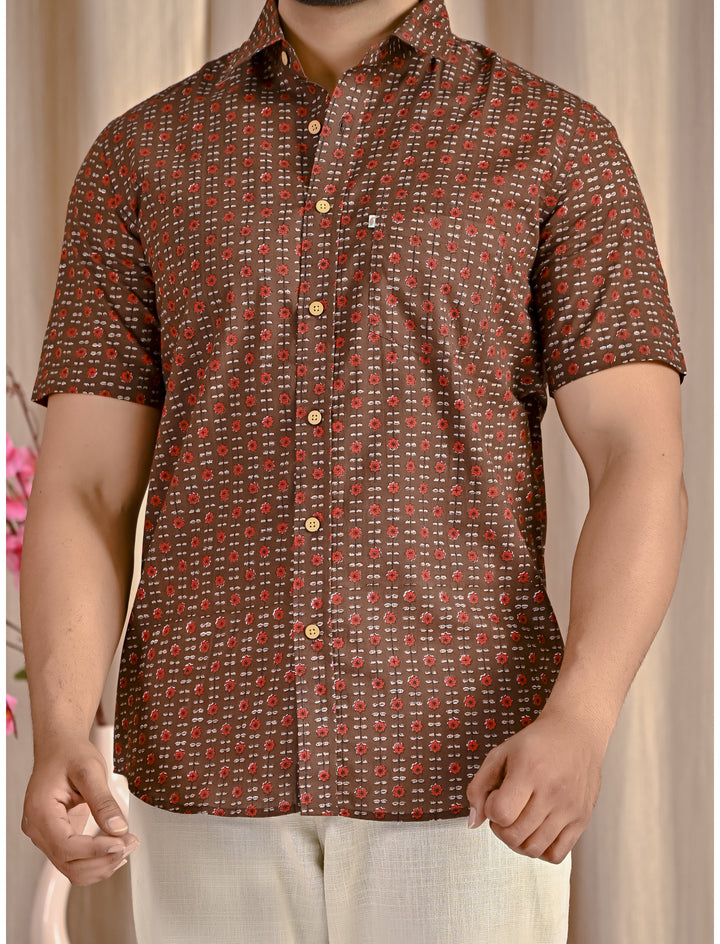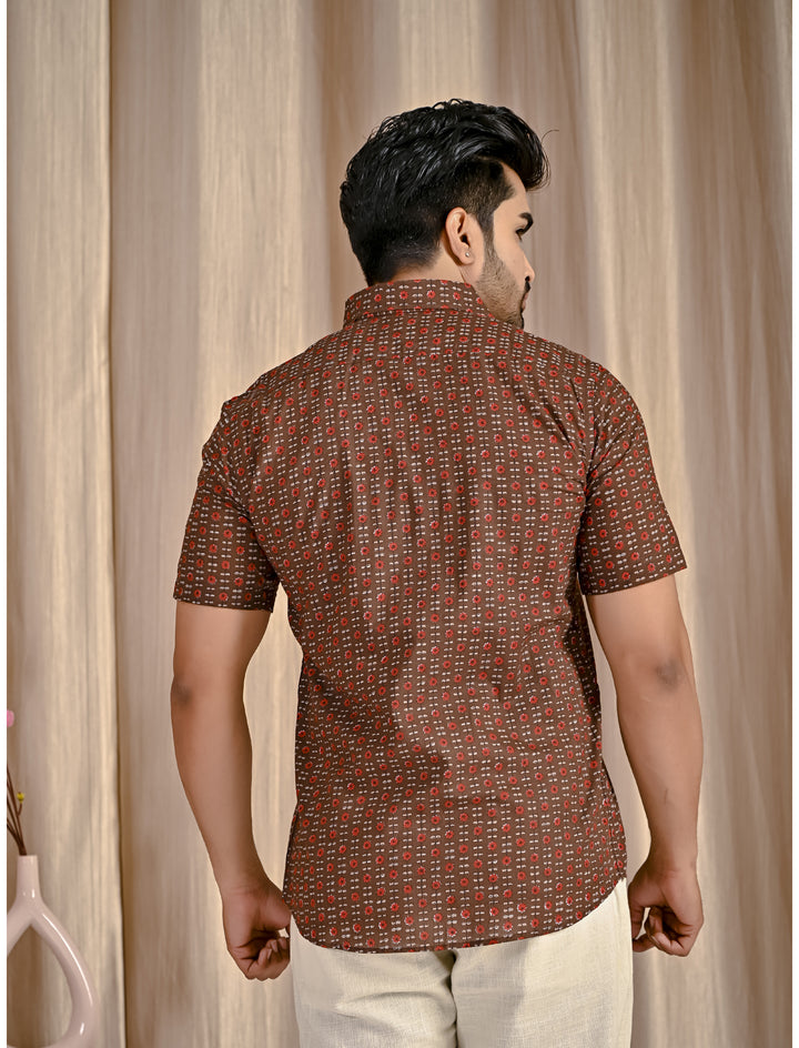 This hand block printed cotton shirt is presented to you by Gulabchand Prints, A well-known brand in hand block prints from over 9 decades. This exclusively hand stitched shirt is made of 100% pure cotton fabric with having hand block printed prints over it. Wear this at your ease and the fabric is so smooth to skin that you will love it and the attractive prints adds more charm to the same.
