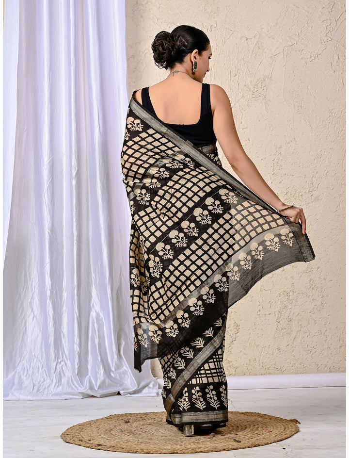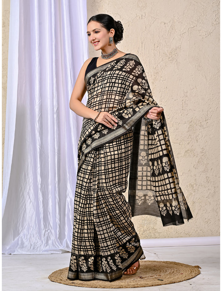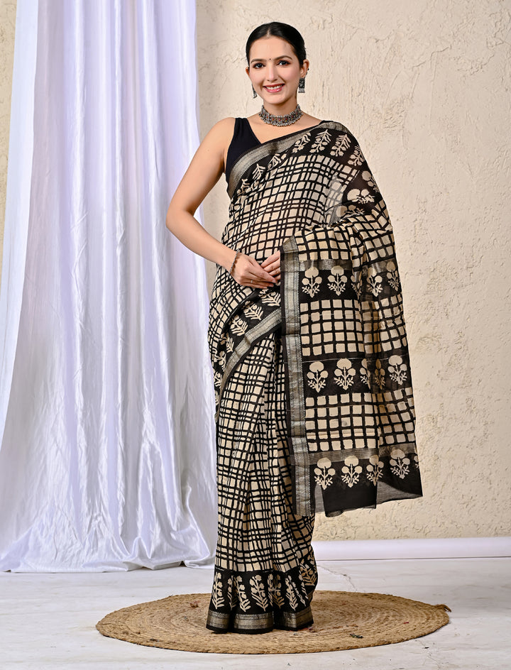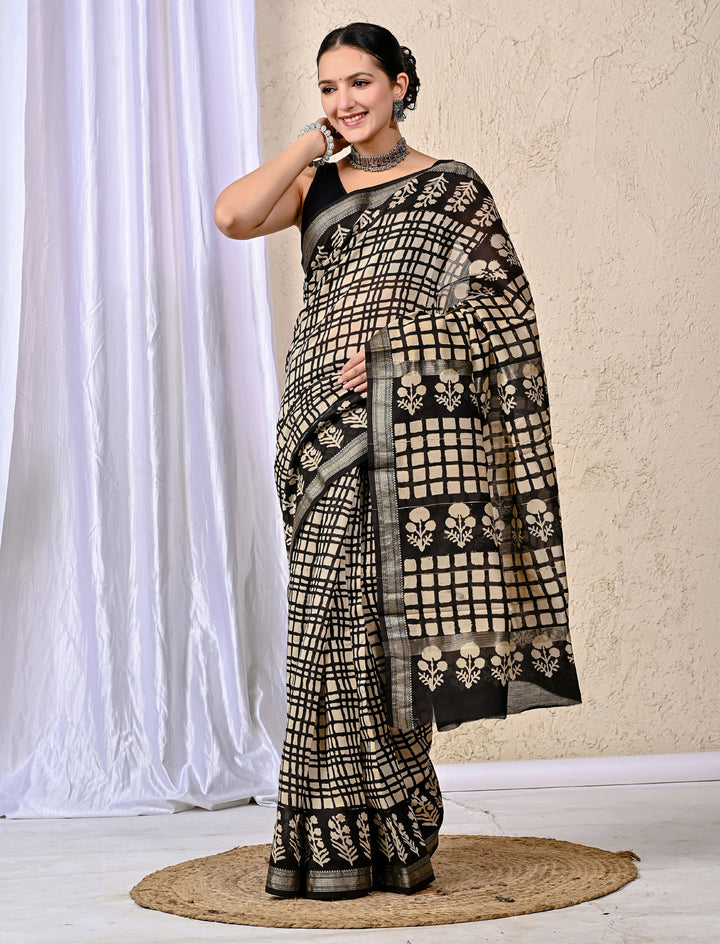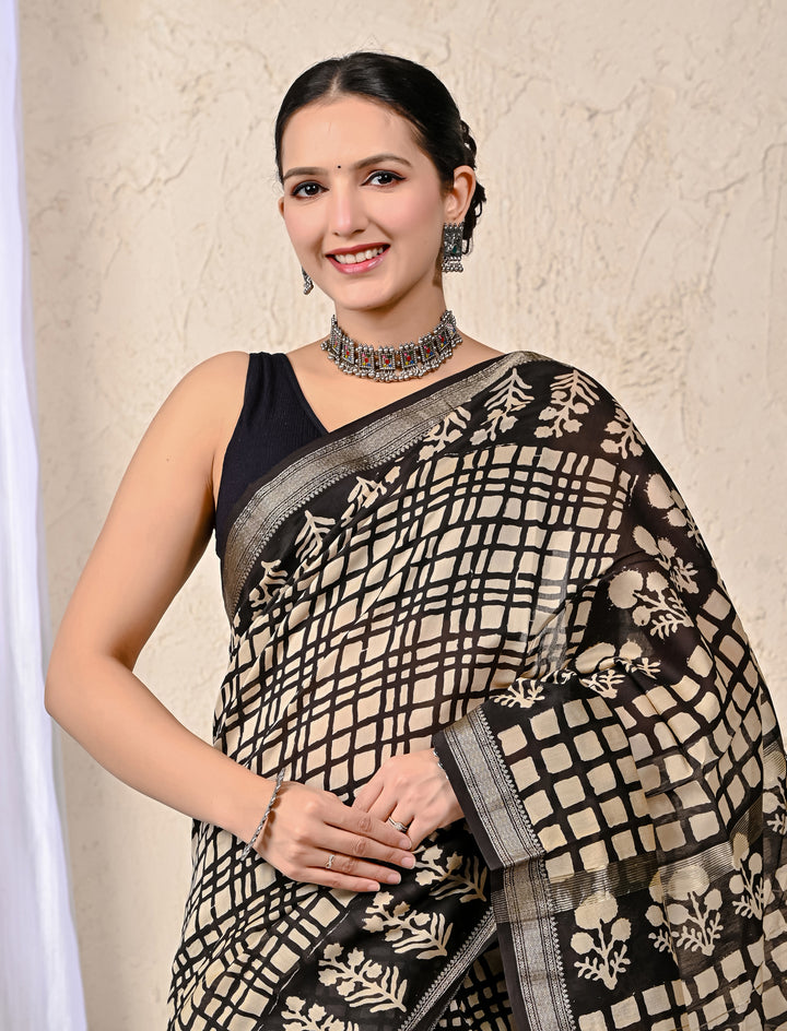 This printed saree is presented to you by Gulabchand Prints, A well-known brand in hand block prints from over 9 decades. This exclusively saree is made of 100% pure chanderi fabric with having printed prints over it. Attached with a blouse, this saree can be your perfect for your saree needs.
