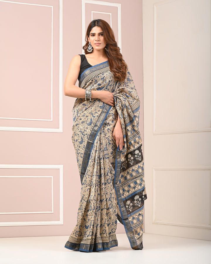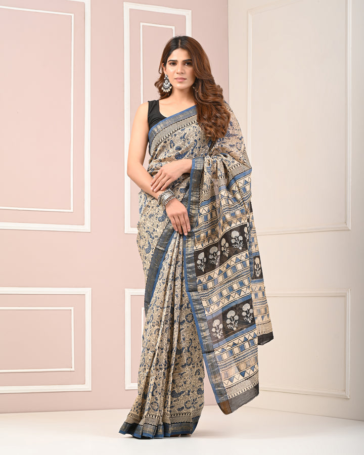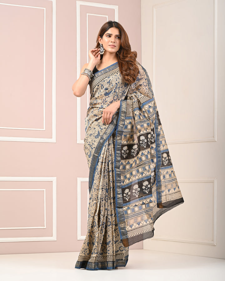 This printed saree is presented to you by Gulabchand Prints, A well-known brand in hand block prints from over 9 decades. This exclusively saree is made of 100% pure chanderi fabric with having printed prints over it. Attached with a blouse, this saree can be your perfect for your saree needs.