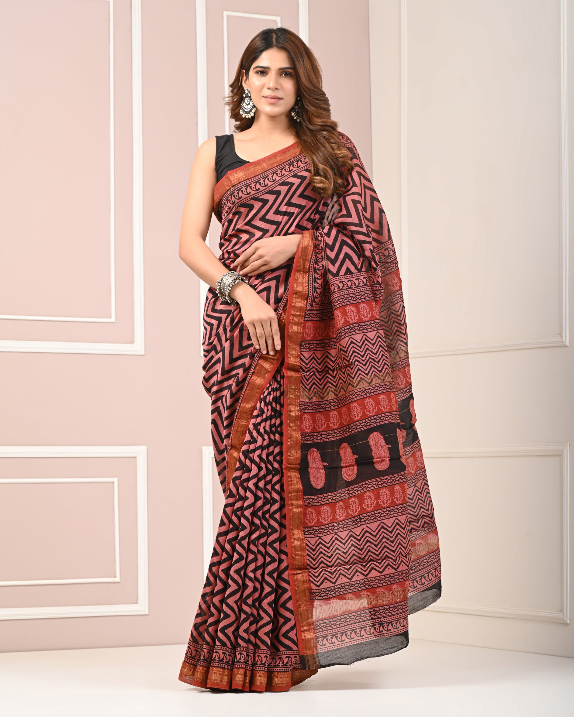 This printed saree is presented to you by Gulabchand Prints, A well-known brand in hand block prints from over 9 decades. This exclusively saree is made of 100% pure chanderi fabric with having printed prints over it. Attached with a blouse, this saree can be your perfect for your saree needs.