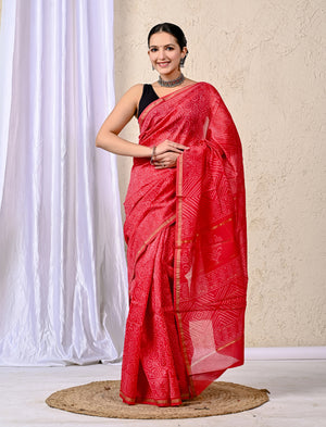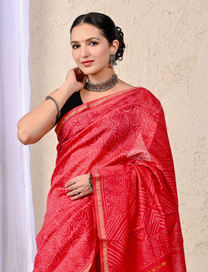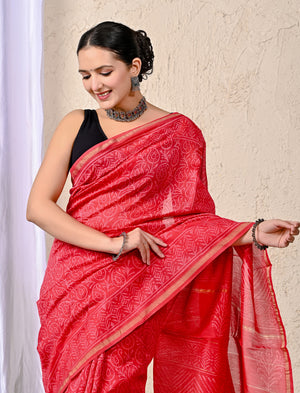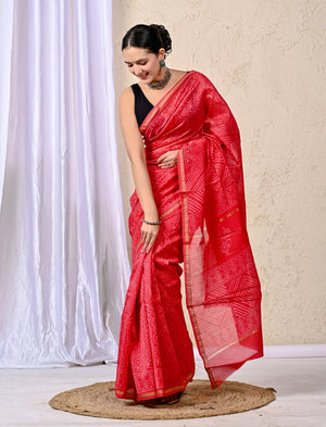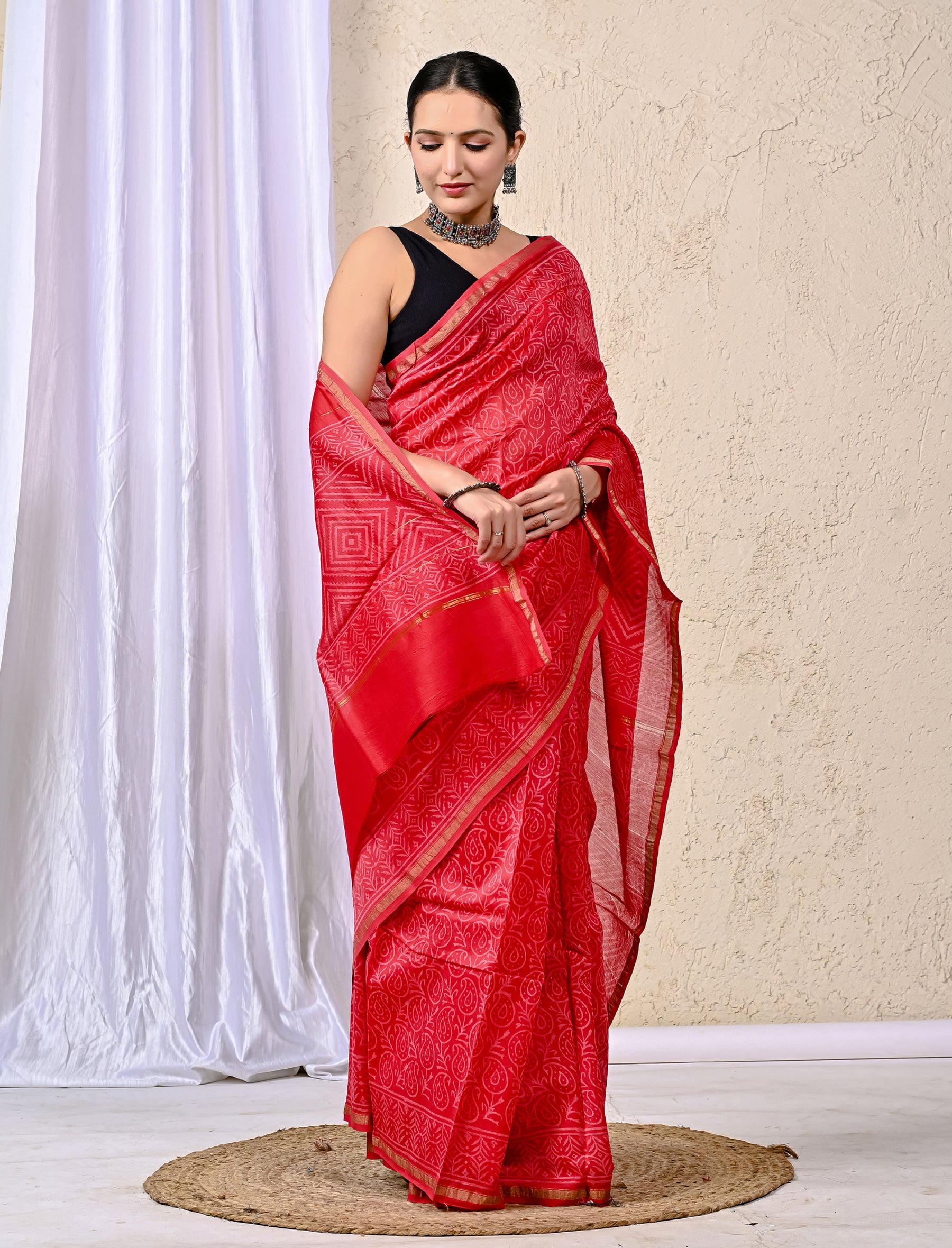 This printed saree is presented to you by Gulabchand Prints, A well-known brand in hand block prints from over 9 decades. This exclusively saree is made of 100% pure chanderi fabric with having printed prints over it. Attached with a blouse, this saree can be your perfect for your saree needs.