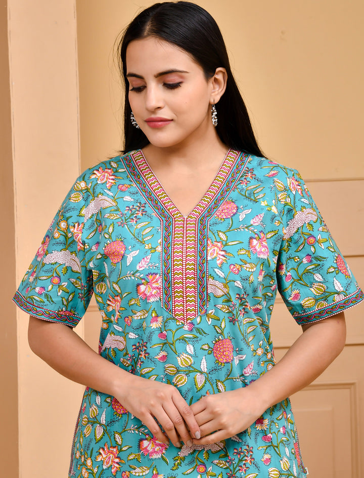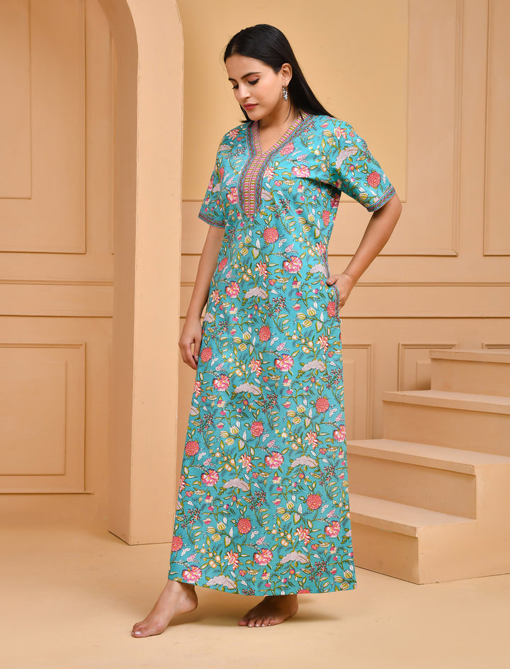 This hand block printed night is made of best quality cotton fabric with immersive prints and fancy designs.
