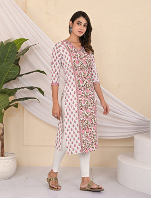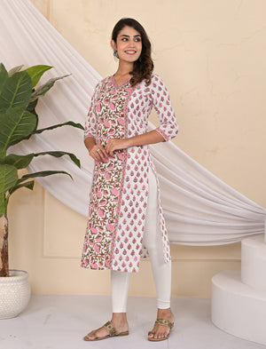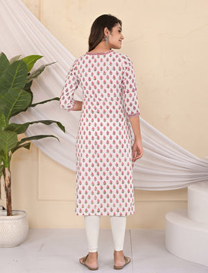 This printed ethnic wear kurti is presented to you by Gulabchand Prints, A well-known brand in hand block prints from over 9 decades. This exclusively hand stitched kurti is made of 100% pure cotton fabric with having printed prints over it. The kurti is best suitable for you to showcase your women hood. Wear this at your ease and the fabric is so smooth to skin that you will love it and the attractive prints adds more charm to the same.