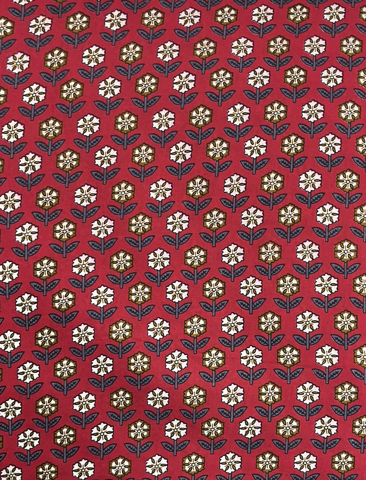 This hand block printed cotton fabric is presented to you by Gulabchand Prints, A well-known brand in hand block prints from over 9 decades. This fabric is made of 100% pure cotton fabric with having hand block printed prints over it.