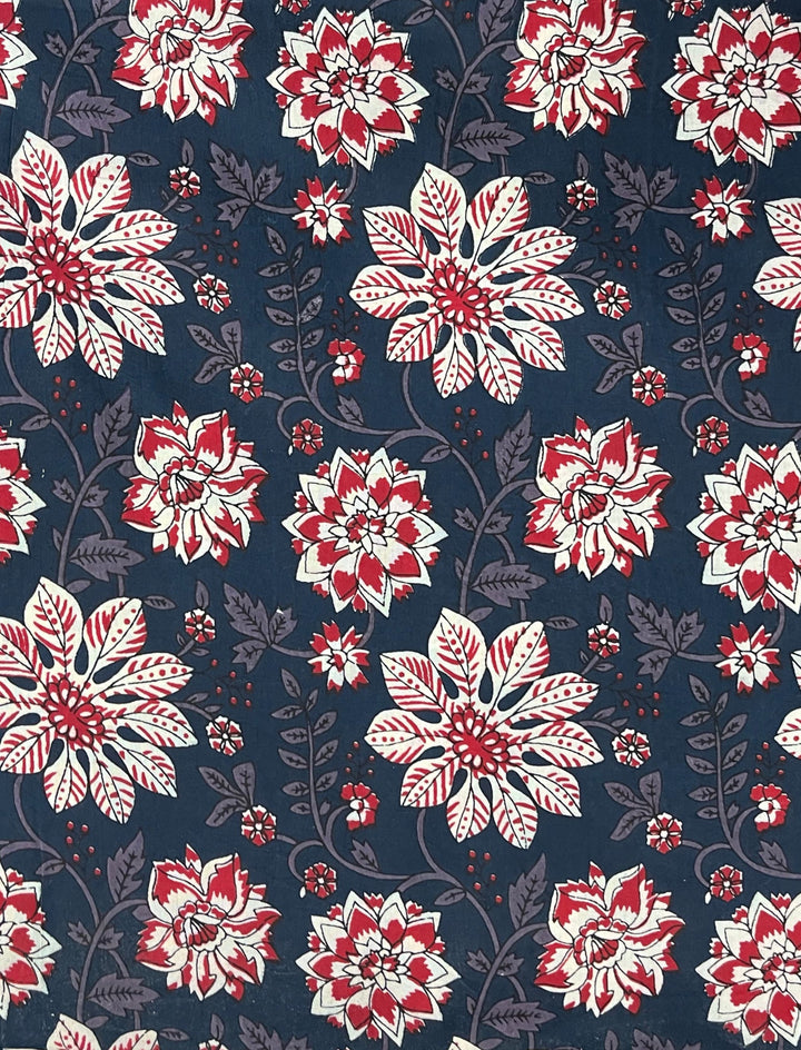 This hand block printed cotton fabric is presented to you by Gulabchand Prints, A well-known brand in hand block prints from over 9 decades. This fabric is made of 100% pure cotton fabric with having hand block printed prints over it.