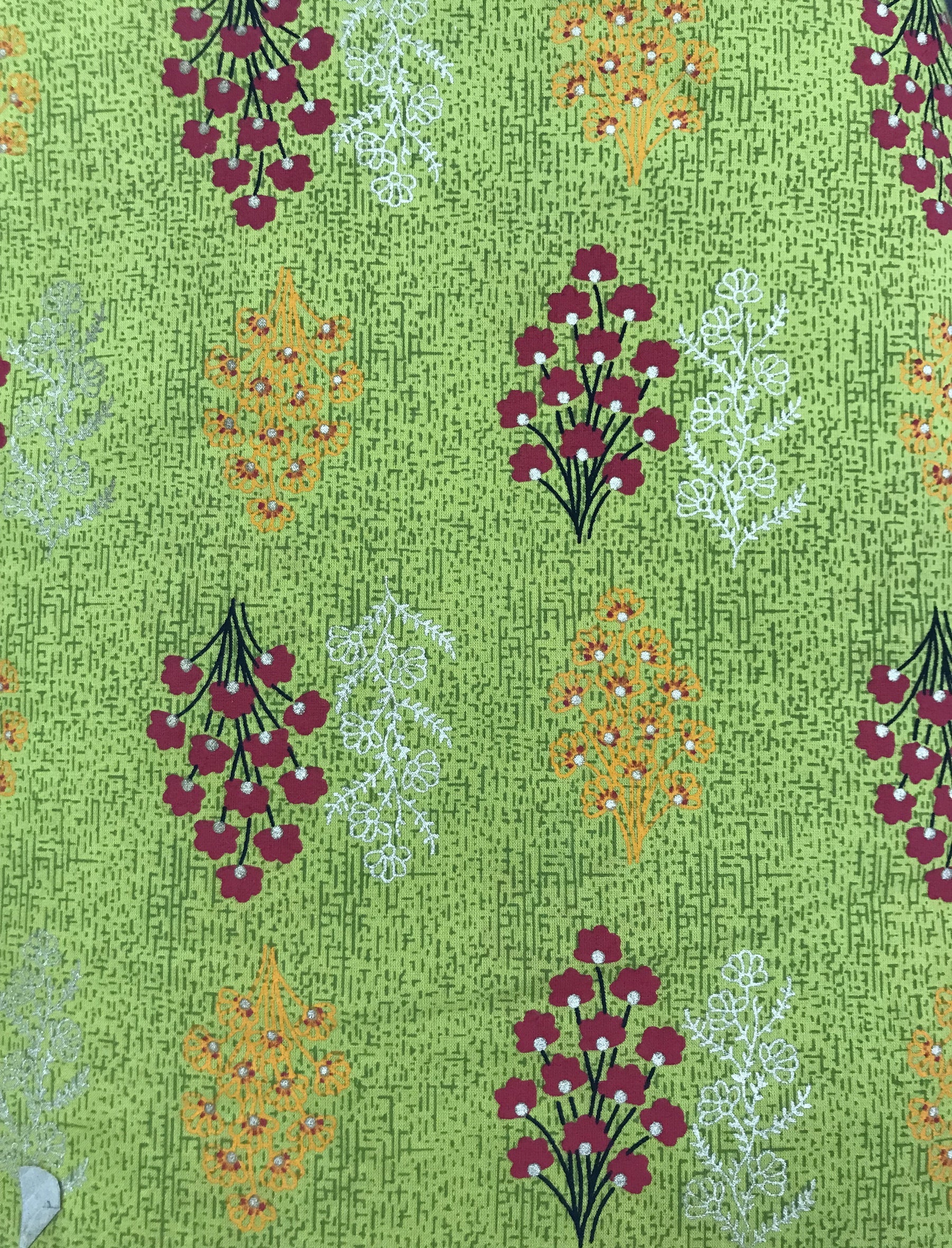 This hand block printed cotton fabric is presented to you by Gulabchand Prints, A well-known brand in hand block prints from over 9 decades. This fabric is made of 100% pure cotton fabric with having hand block printed prints over it.