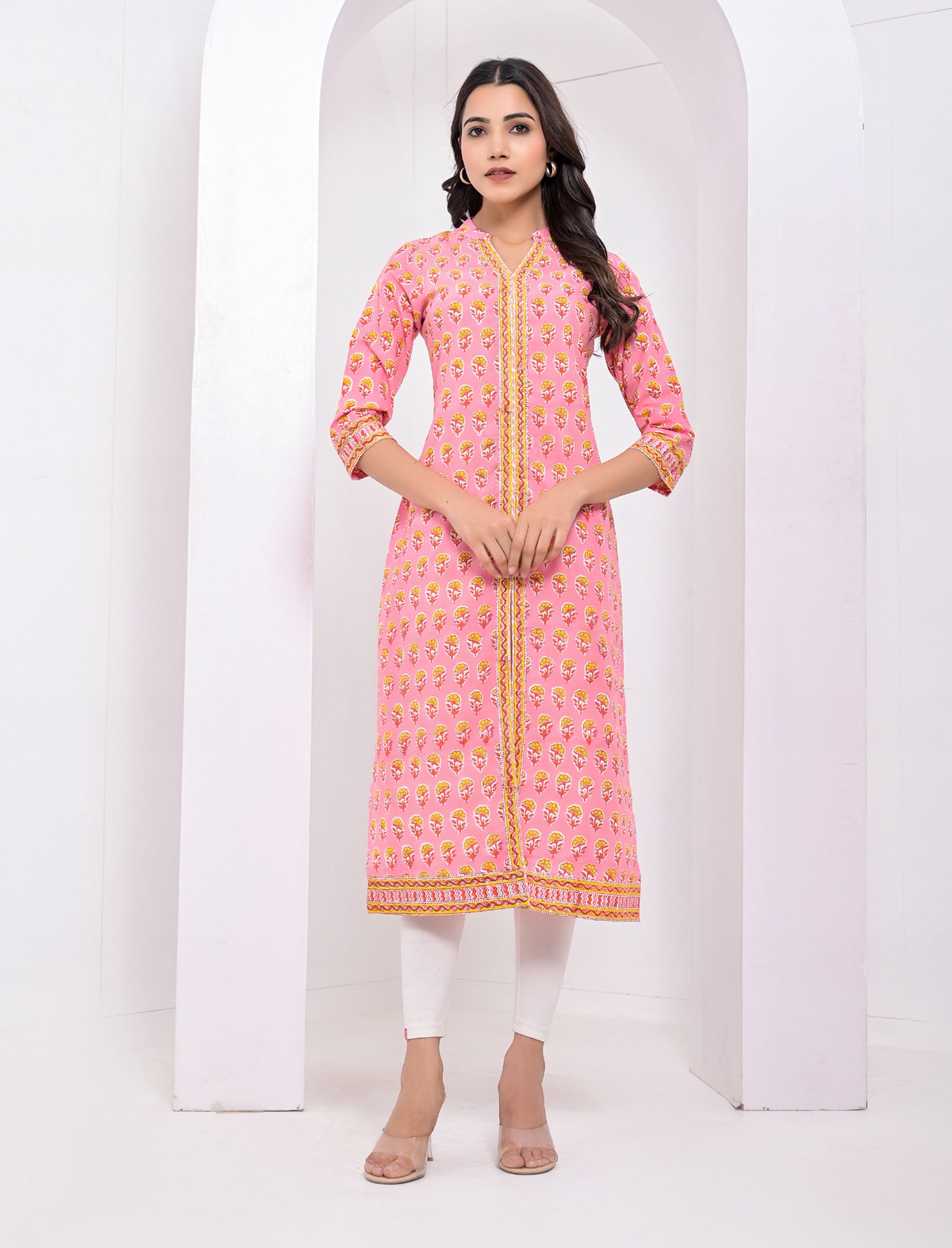 Cotton Block Printed Pink Kurti