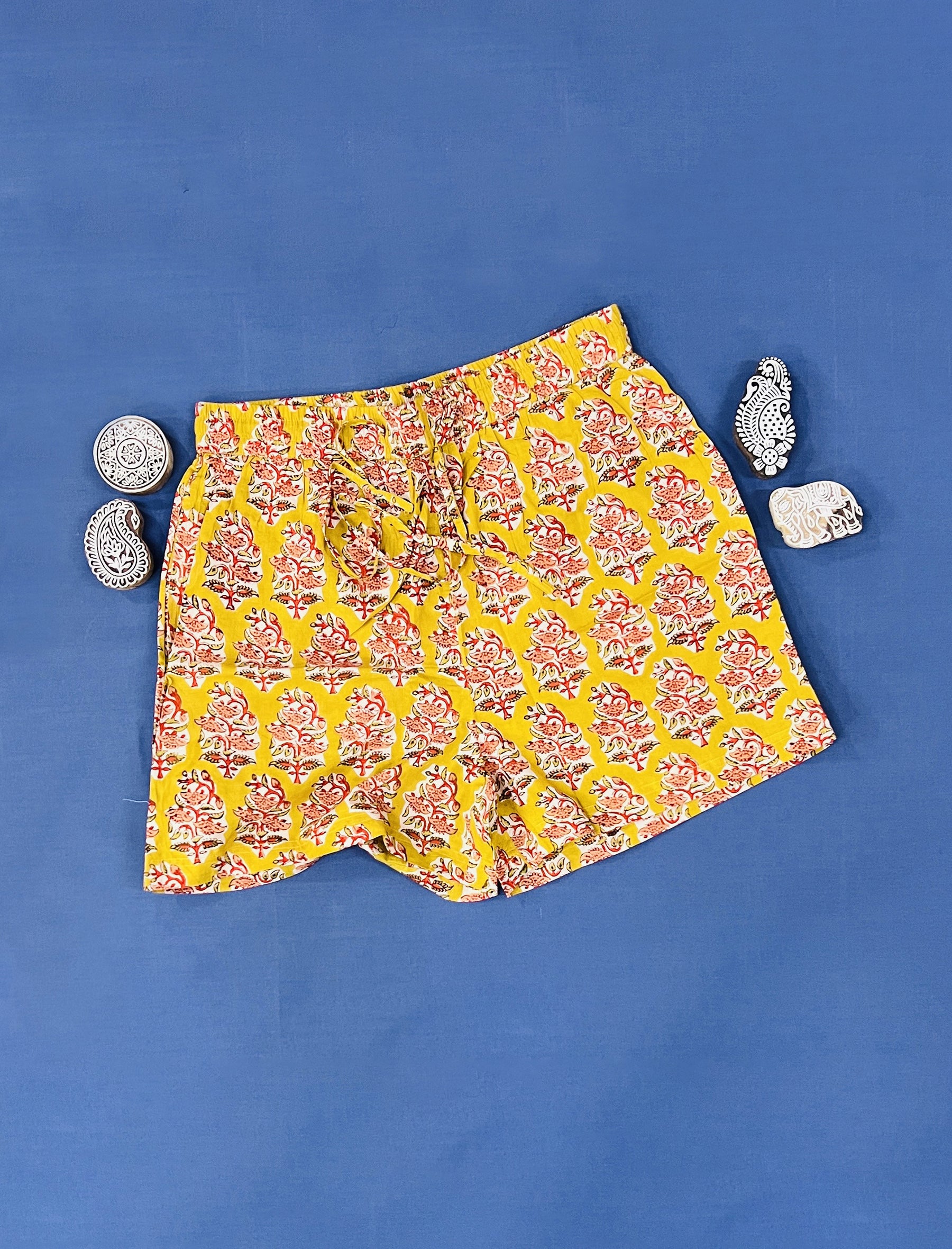 Cotton Block Printed Shorts - Large