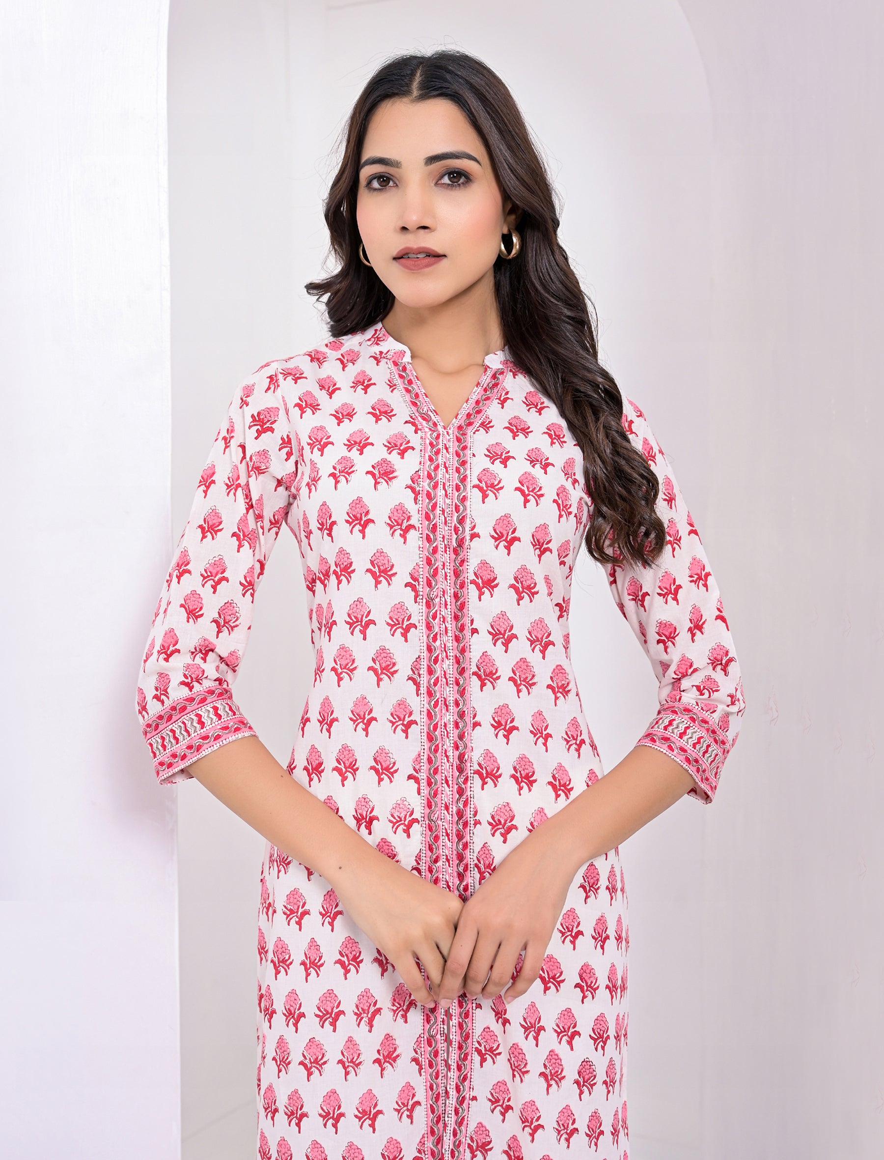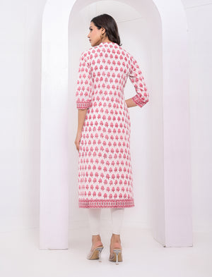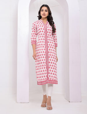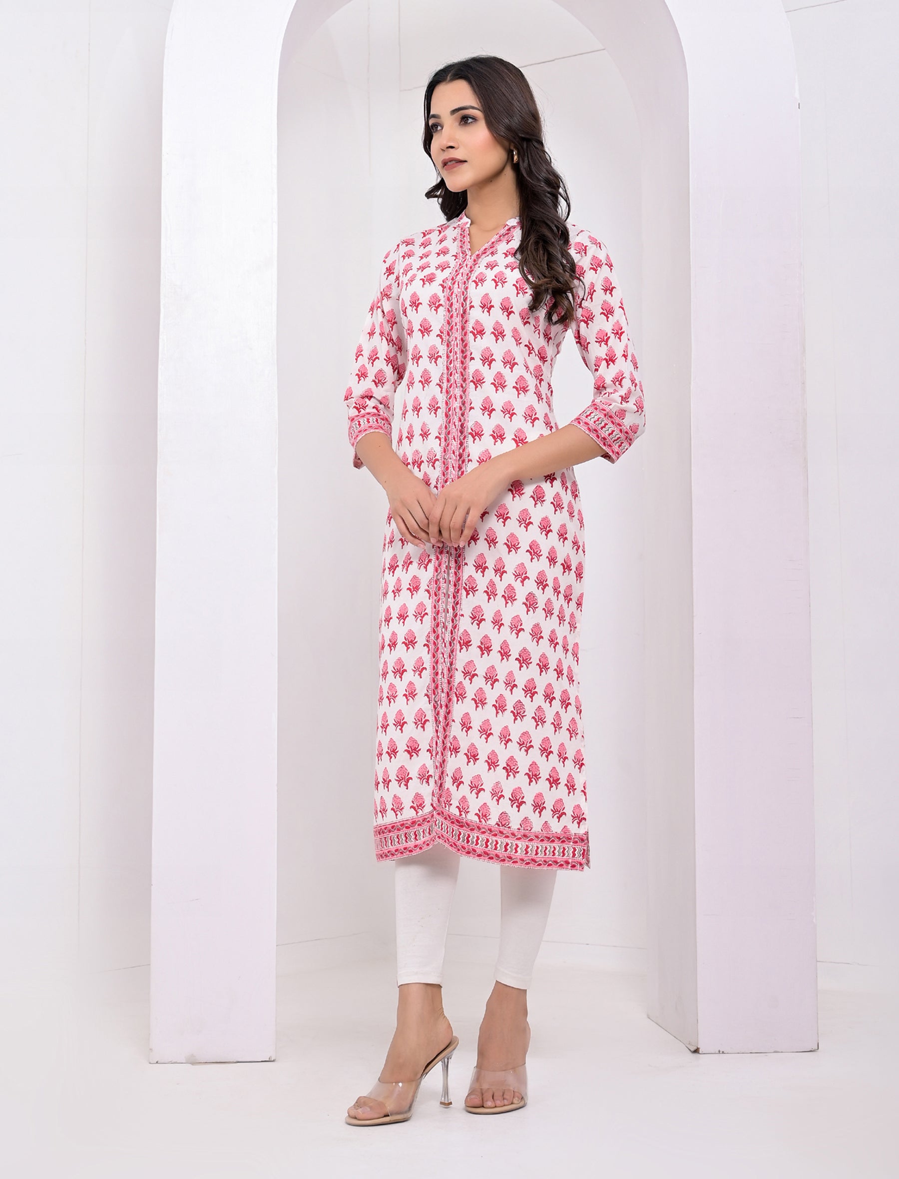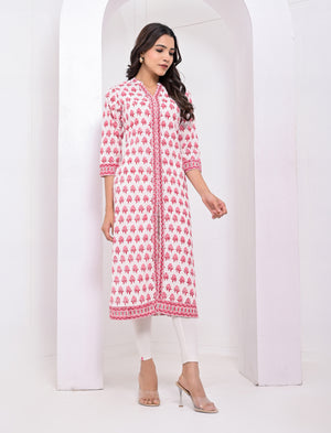 This printed ethnic wear kurti is presented to you by Gulabchand Prints, A well-known brand in hand block prints from over 9 decades. This exclusively hand stitched kurti is made of 100% pure cotton fabric with having printed prints over it. The kurti is best suitable for you to showcase your women hood. Wear this at your ease and the fabric is so smooth to skin that you will love it and the attractive prints adds more charm to the same.