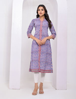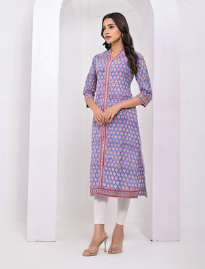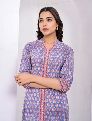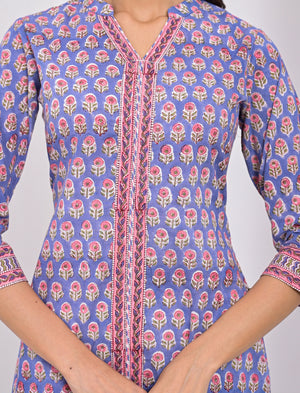 Cotton Block Printed Blue Kurti