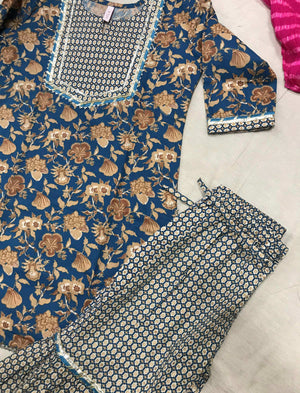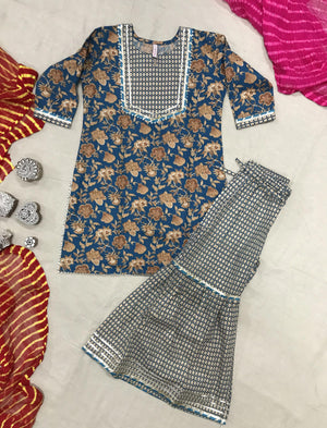 Block Printed Cotton Kurta Sharara ( Set 2 )