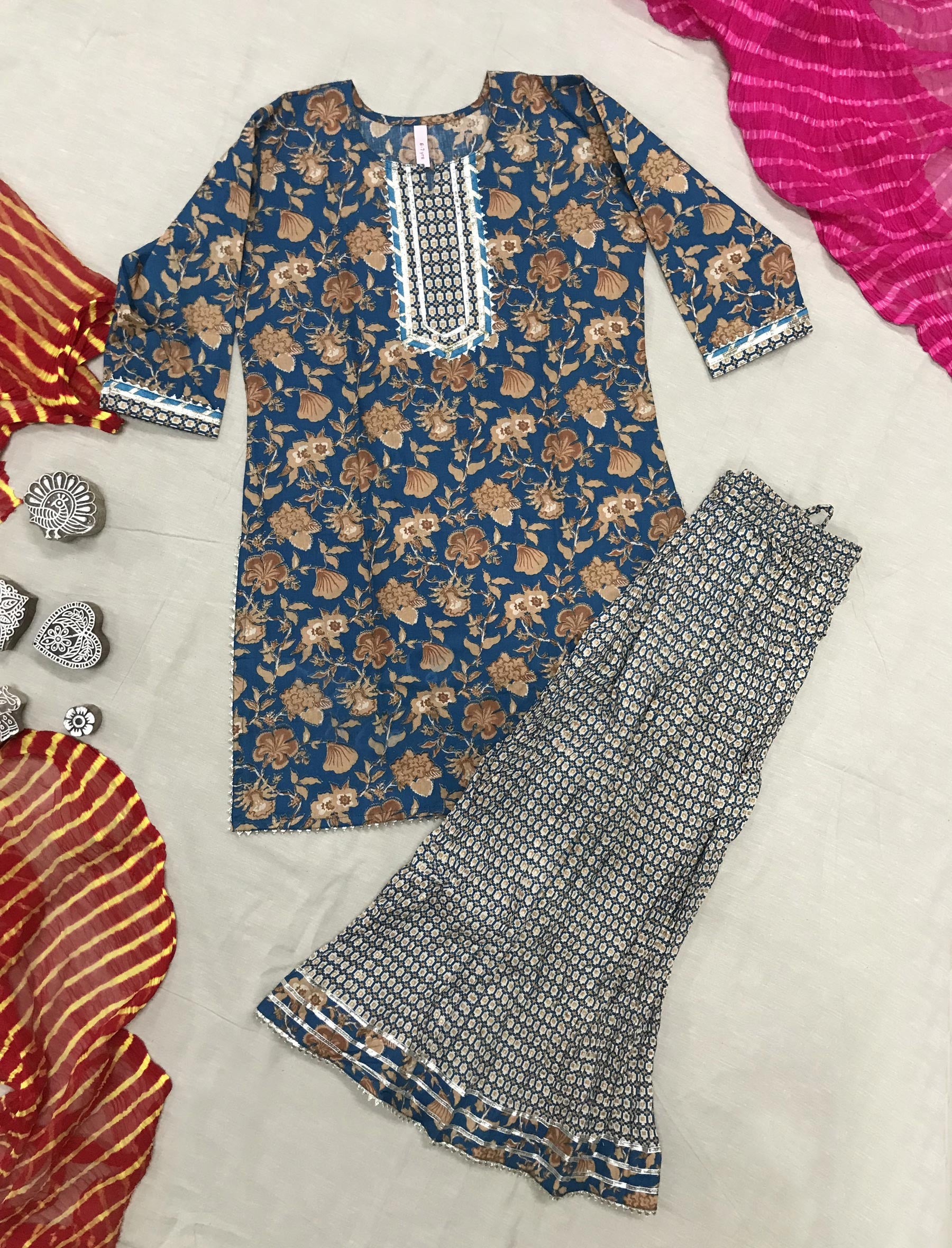 Block Printed Cotton Kurta Skirt ( Set 2 )