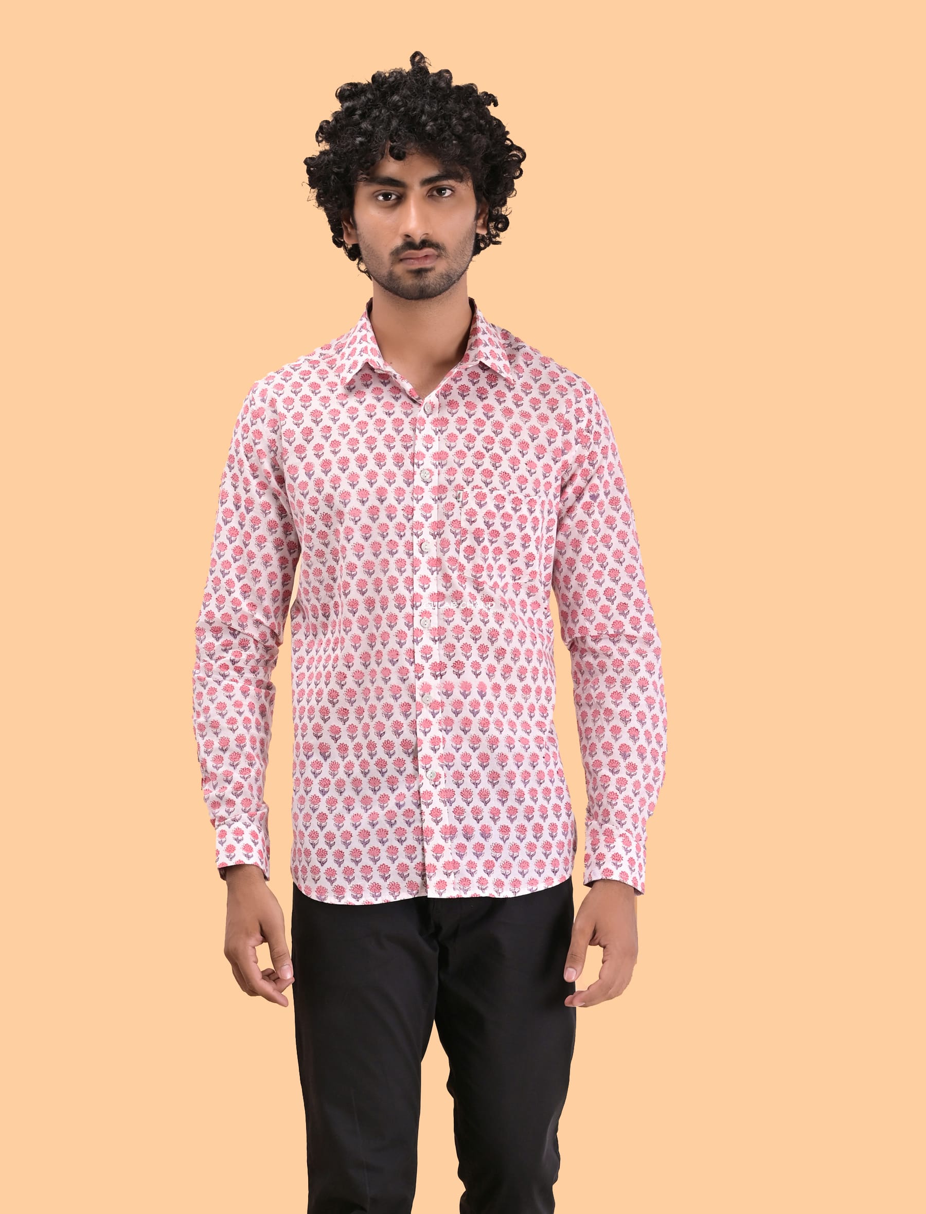 This hand block printed cotton shirt is presented to you by Gulabchand Prints, A well-known brand in hand block prints from over 9 decades. This exclusively hand stitched shirt is made of 100% pure cotton fabric with having hand block printed prints over it. Wear this at your ease and the fabric is so smooth to skin that you will love it and the attractive prints adds more charm to the same.