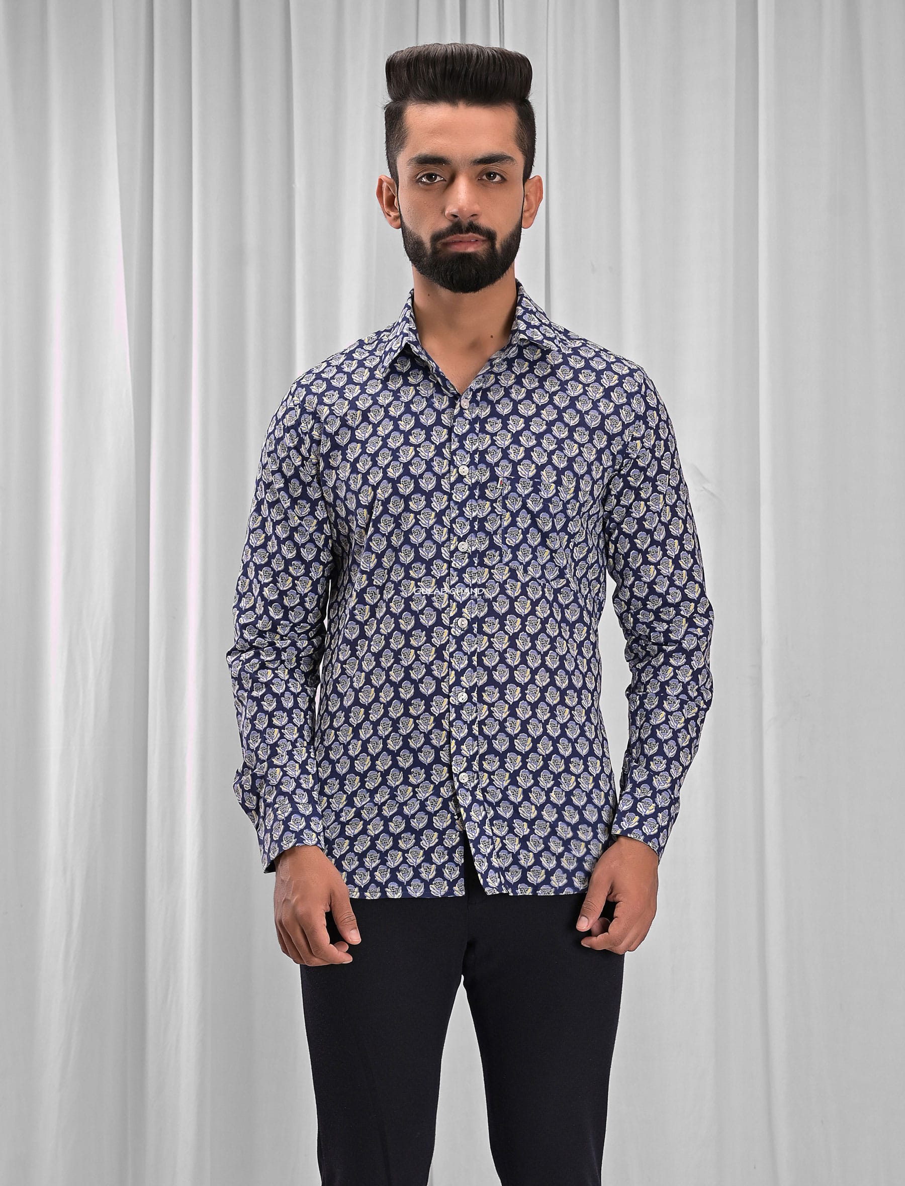 This hand block printed cotton shirt is presented to you by Gulabchand Prints, A well-known brand in hand block prints from over 9 decades. This exclusively hand stitched shirt is made of 100% pure cotton fabric with having hand block printed prints over it. Wear this at your ease and the fabric is so smooth to skin that you will love it and the attractive prints adds more charm to the same.