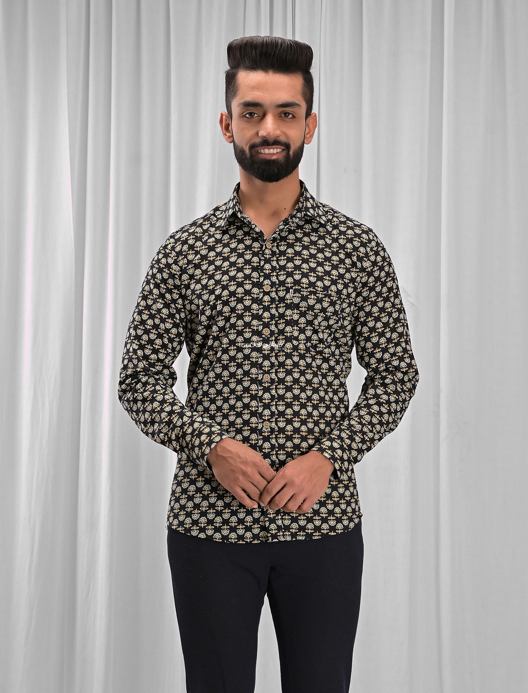 This hand block printed cotton shirt is presented to you by Gulabchand Prints, A well-known brand in hand block prints from over 9 decades. This exclusively hand stitched shirt is made of 100% pure cotton fabric with having hand block printed prints over it. Wear this at your ease and the fabric is so smooth to skin that you will love it and the attractive prints adds more charm to the same.